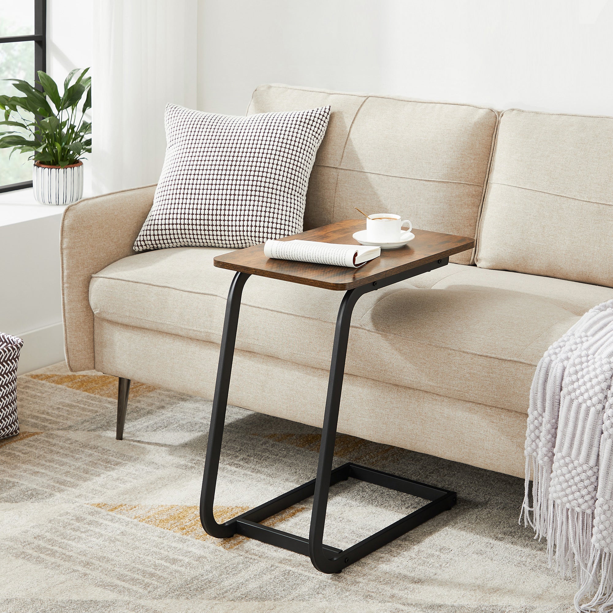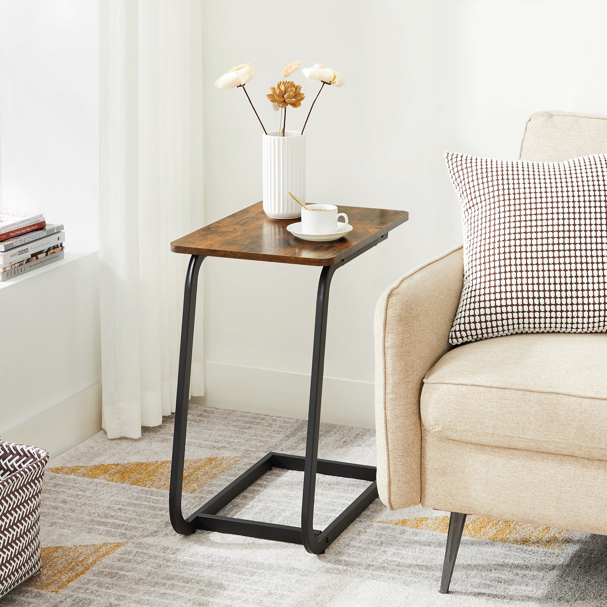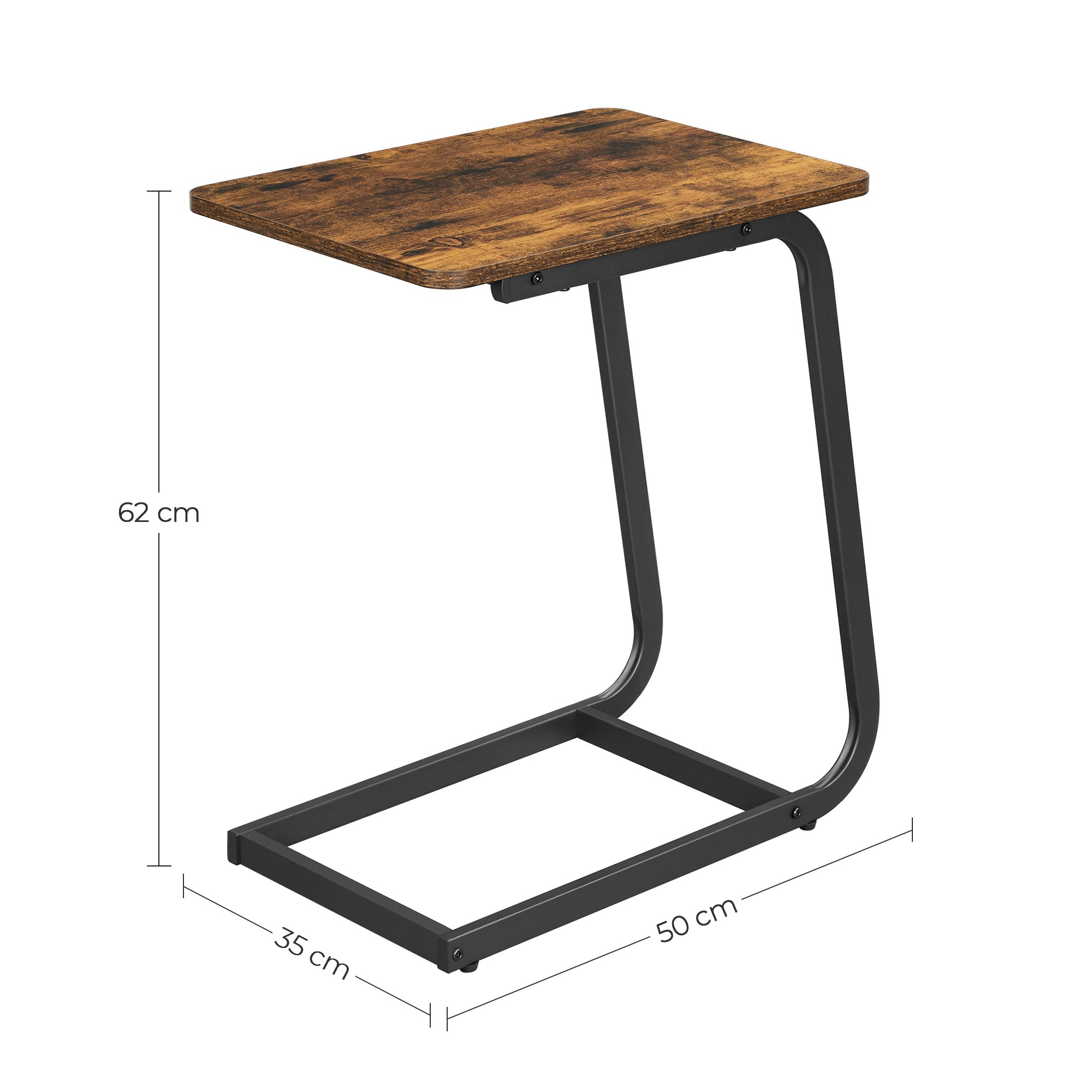 Bijzettafel met Vintage Look, Klein Tafeltje voor Sofa of Bed, 50x62x35 cm, Zwart en Bruin