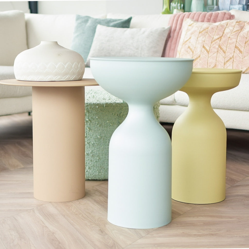 Bijzettafel Rorra heeft een speels en strak design en de zachte kleur is leuk te mixen in een eigentijds interieur. Combineer bijvoorbeeld met warme kleuren zoals naturel, roze en rood voor een soft touch in je interieur. Of combineer Rorra in een strakke Japandi stijl met veel naturel, wit en hier wat zwart contrast. Mix de bijzettafel met andere tafeltjes en poefs voor een speelse look. Specificaties
