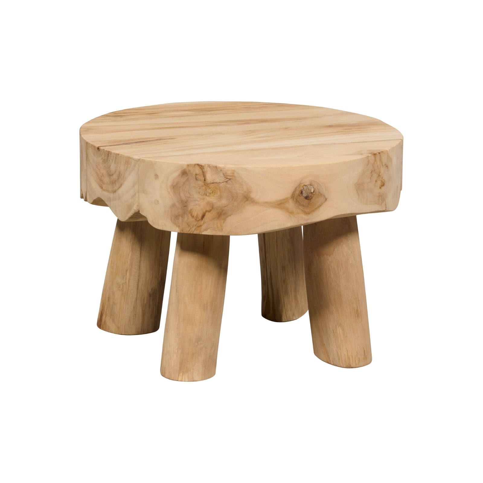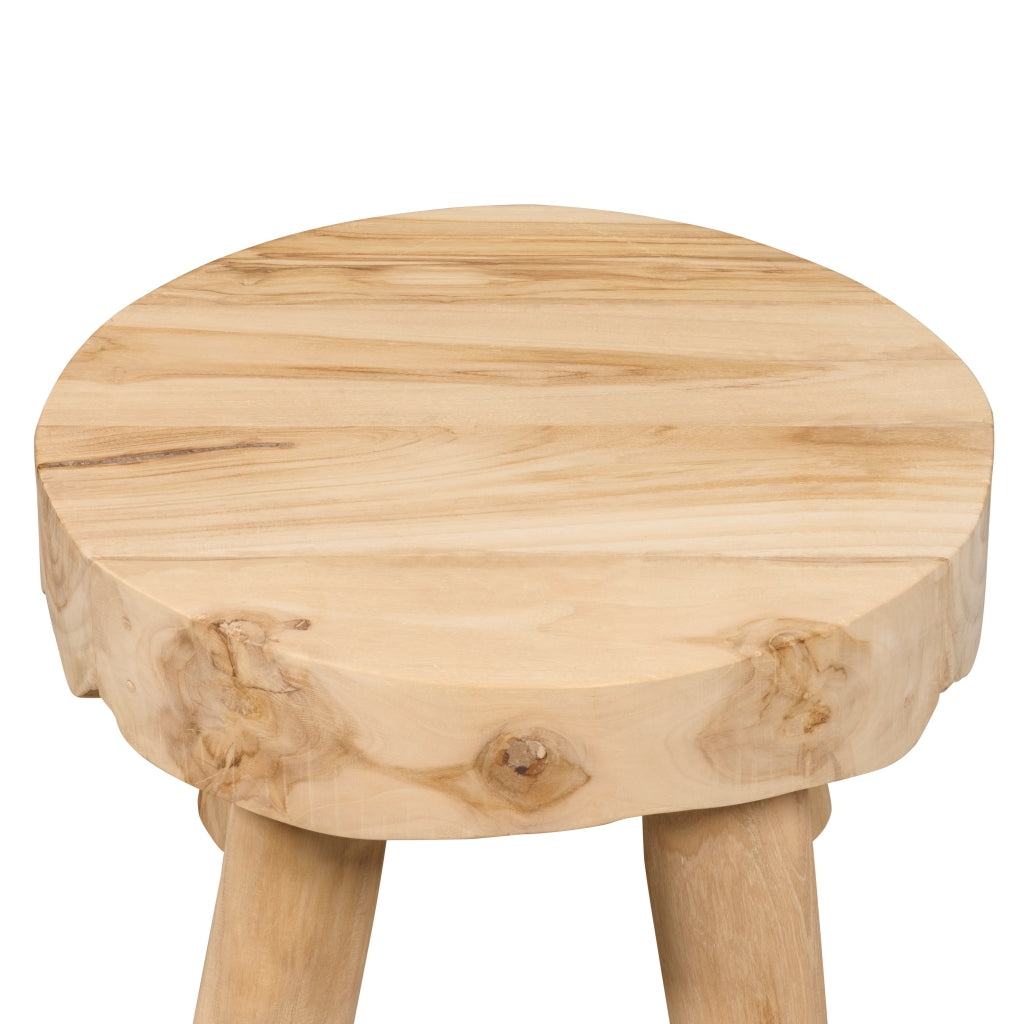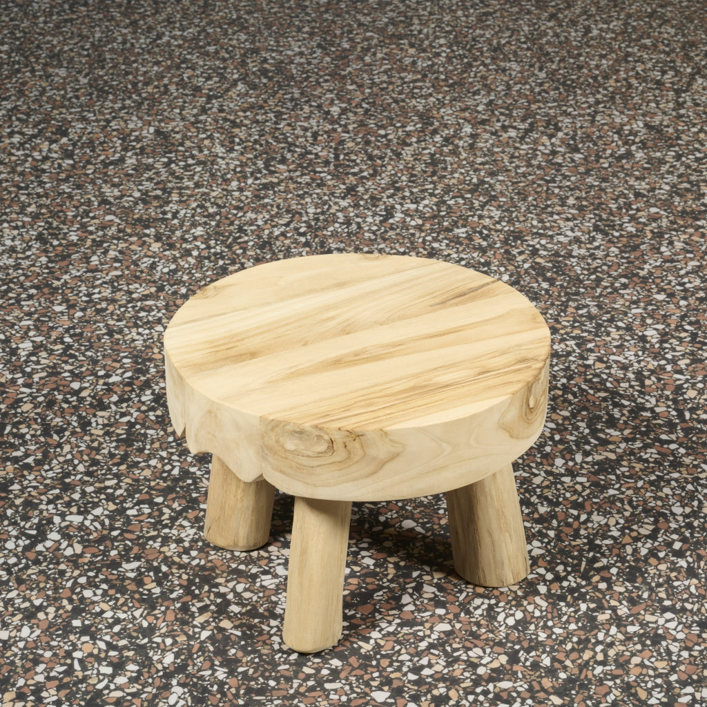 De bijzettafel Tjerk heeft een diameter van 46 cm en is 46 cm hoog. Hij is gemaakt van teakhout in een naturel kleur.