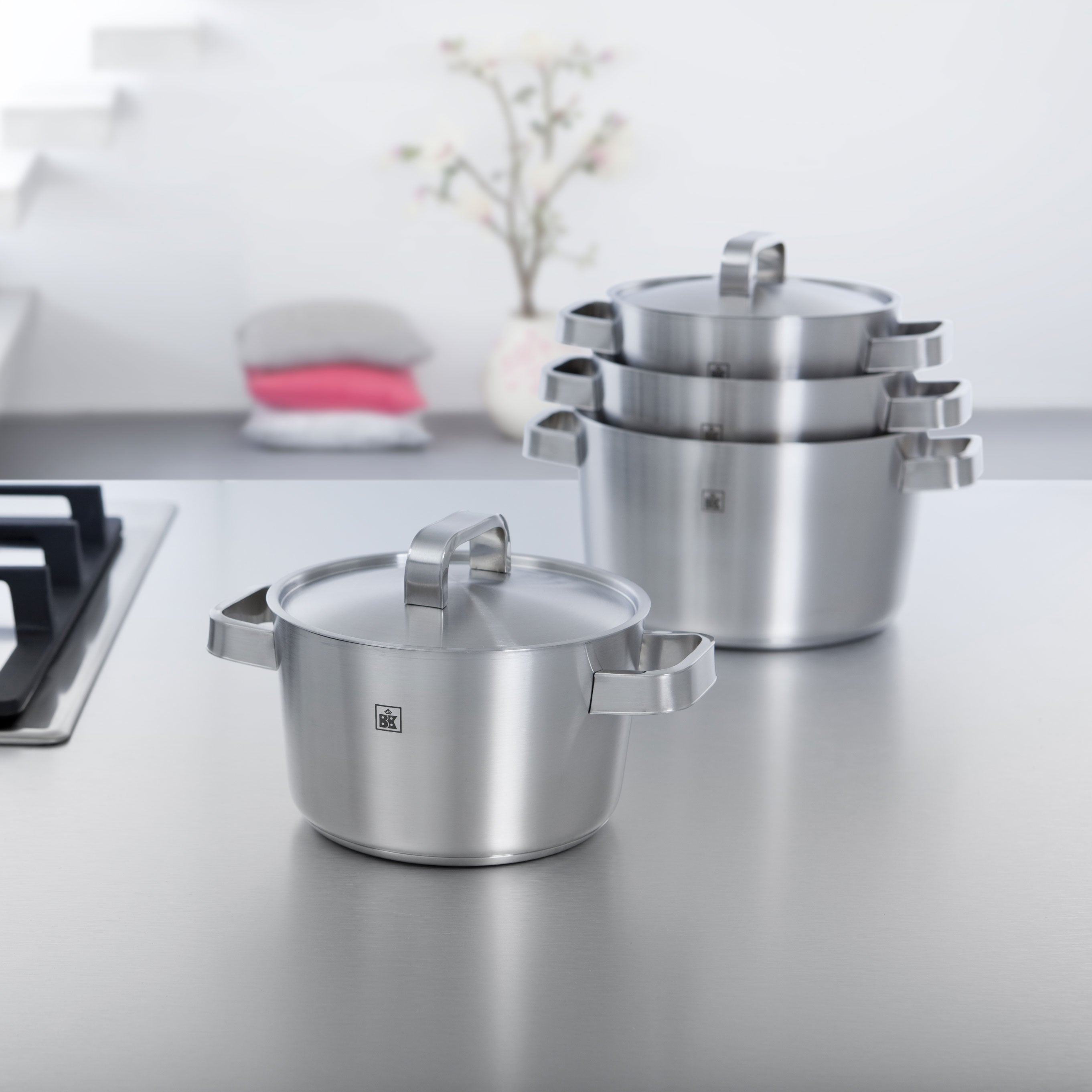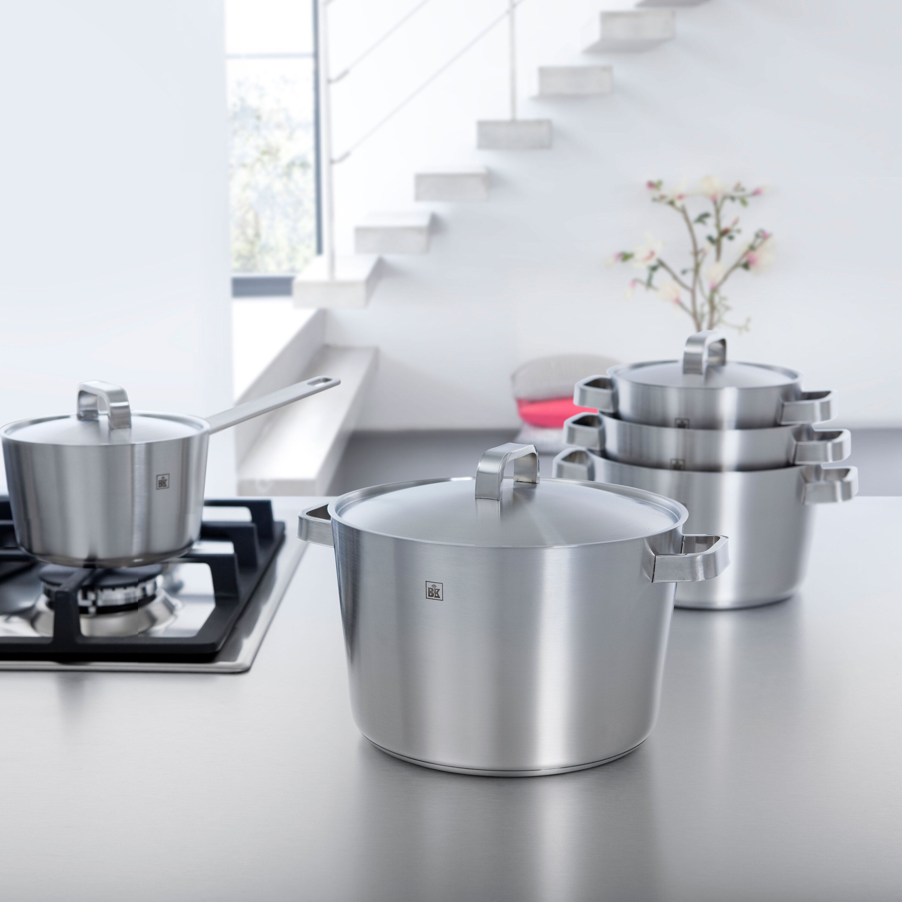 BK Conical Plus serie Een uitermate geschikte pannenserie voor inductie en alle andere warmtebronnen! De RVS pan heeft een ingekapselde sandwichbodem die de pan extra sterk maakt en de kans op kromtrekken nihil wordt. De platte bodem maakt de pan uitermate geschikt voor inductie en dankzij de tussenliggende aluminium laag wordt de bodem gelijkmatig verwarmt en geeft de pan een snelle hittegeleiding.