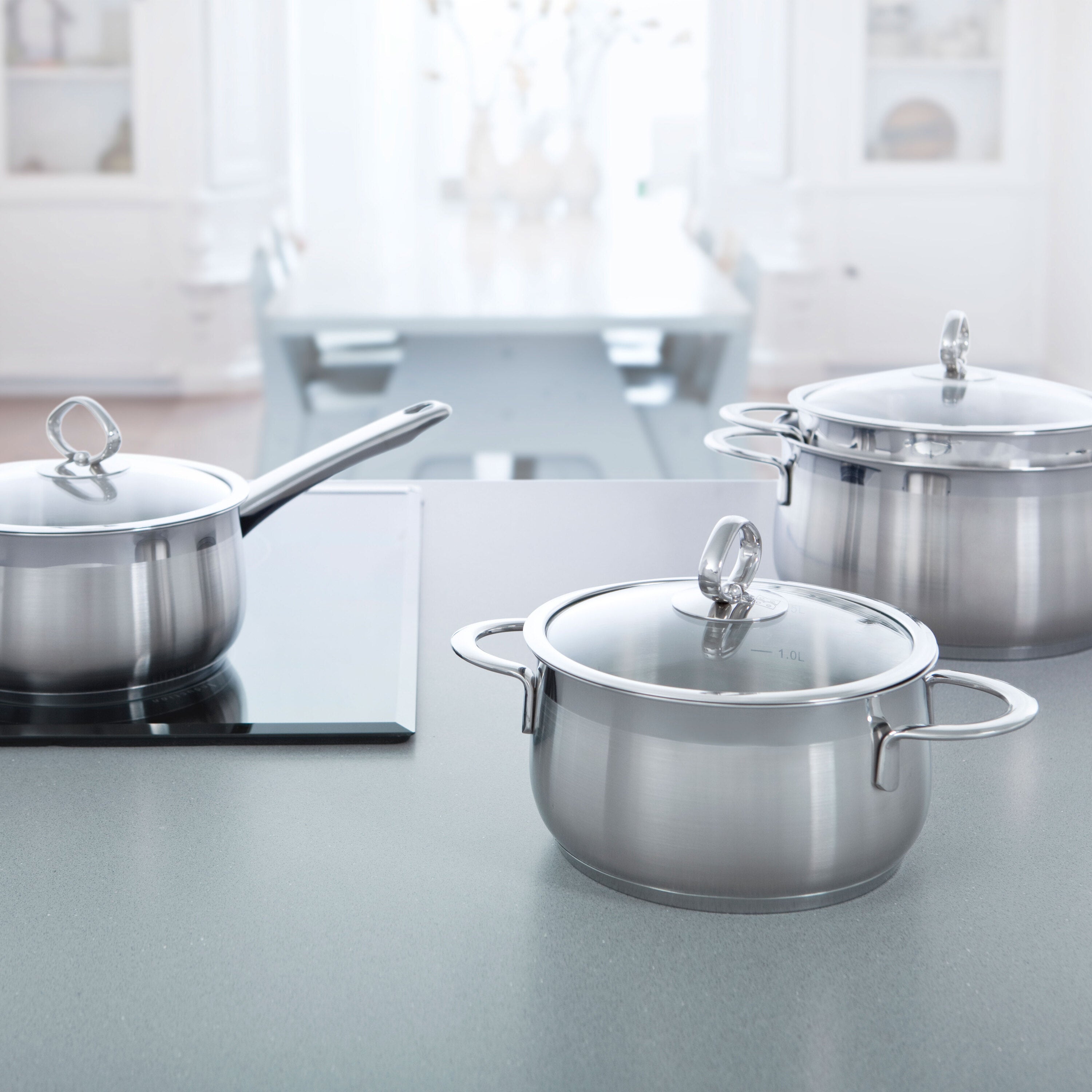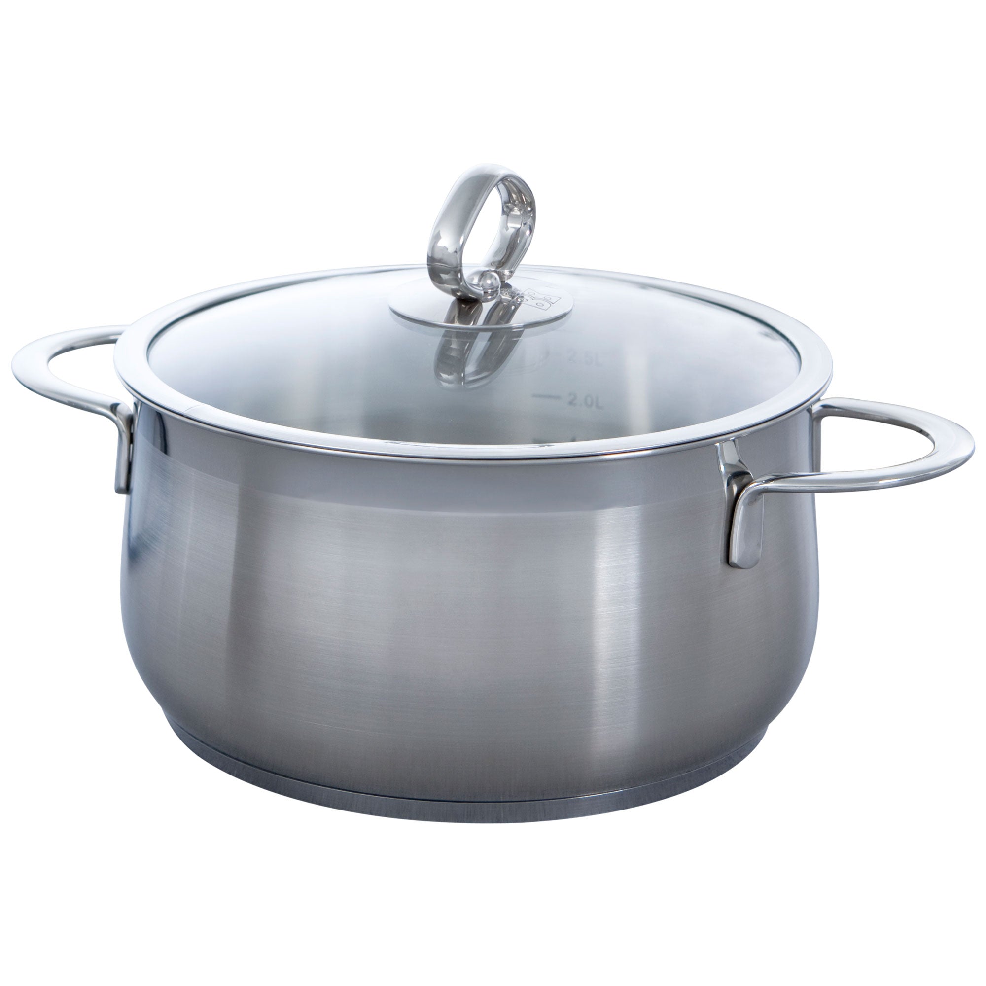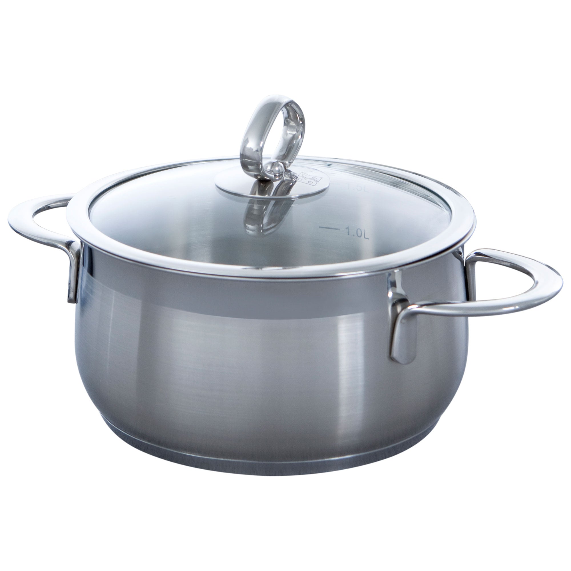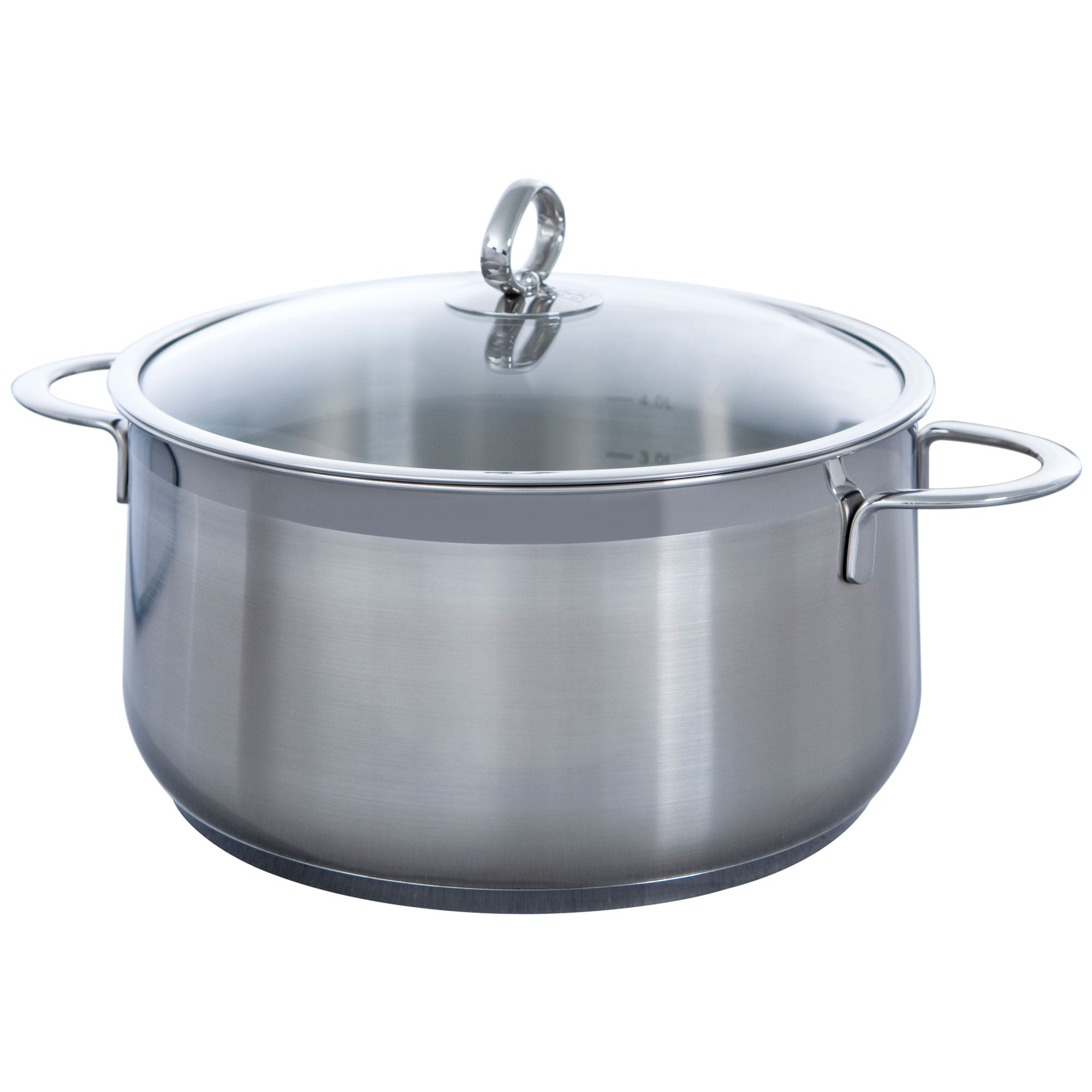 Sandwichbodem De speciale ingekapselde sandwichbodem zorgt voor een bijzondere afwerking en een snelle warmtegeleiding. Het kookproces volg je gemakkelijk dankzij het glazen deksel. Het deksel is stootvast en sluit de pan mooi af.