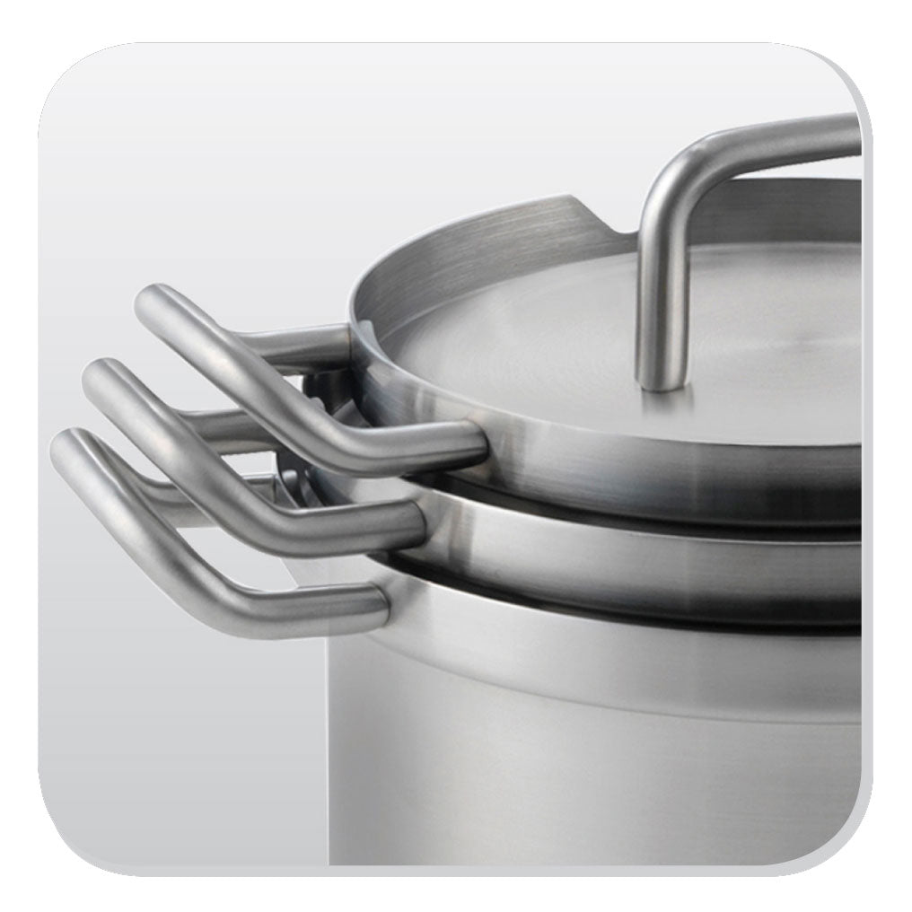- RVS deksels met uniek systeem voor veilig en makkelijk afgieten