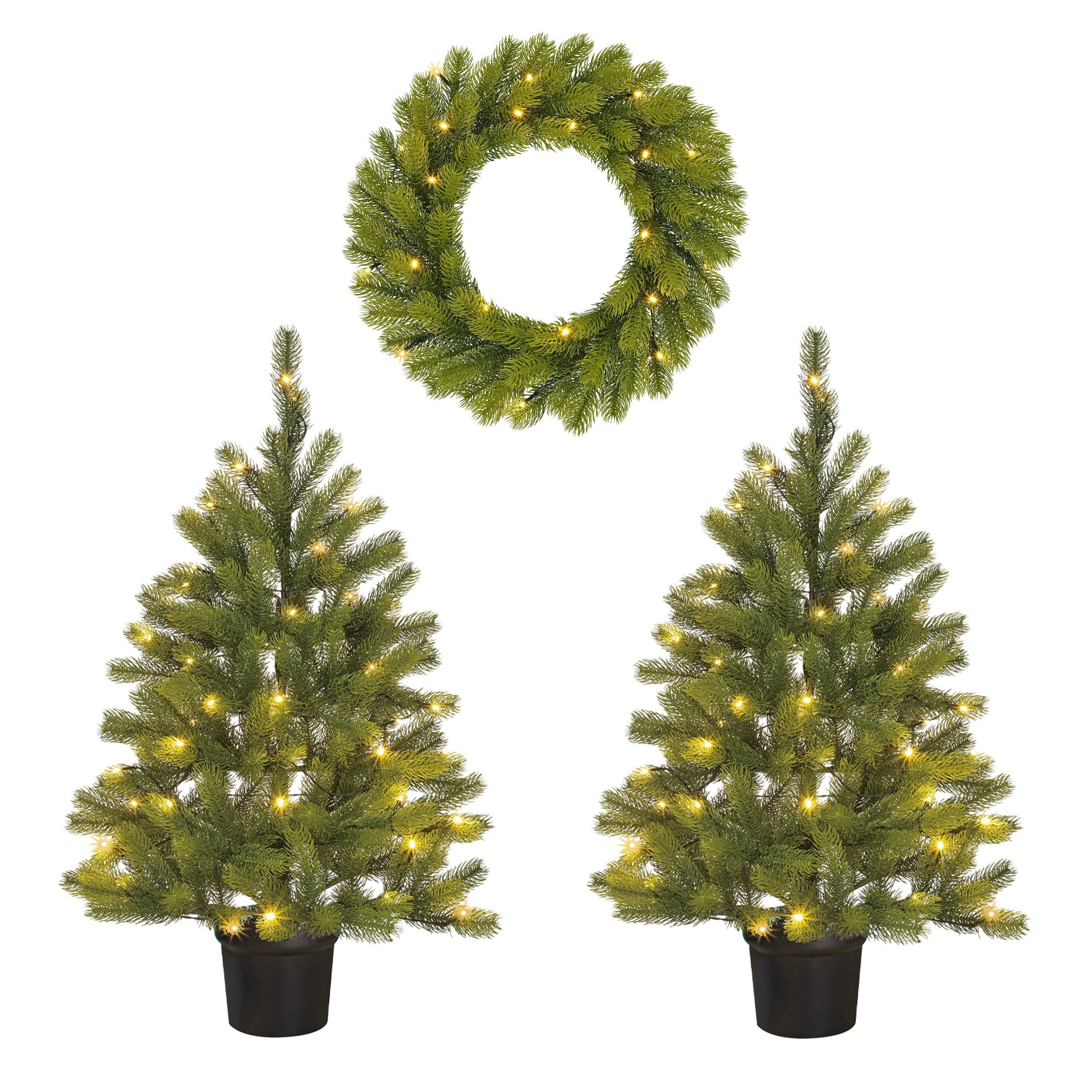 Black Box Trees Nagoya Set van 2 Kerstbomen en 1 Krans - H90 x Ø45 cm