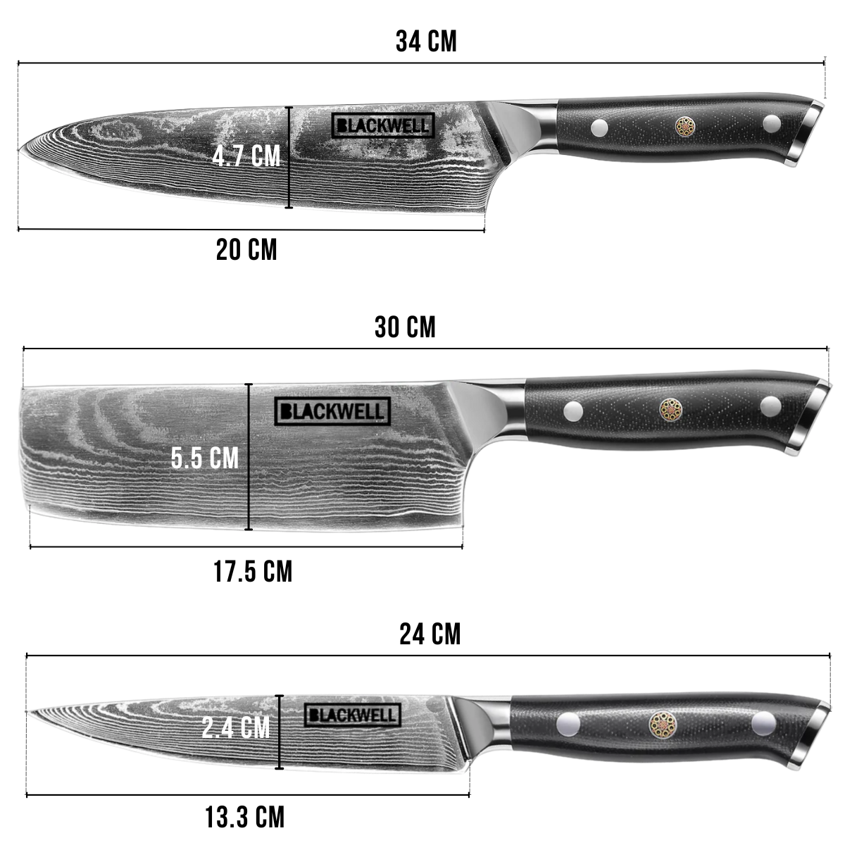 Het Damascuspatroon geeft de messenset een elegante en unieke uitstraling. De messenset is niet alleen een functioneel keukeninstrument, maar ook een stijlvolle toevoeging aan je keuken. Of je nu een hobbykok bent of een culinaire professional, met deze Blackwell messenset maak je elke keer weer indruk. Waarom Kiezen voor deze messenset?