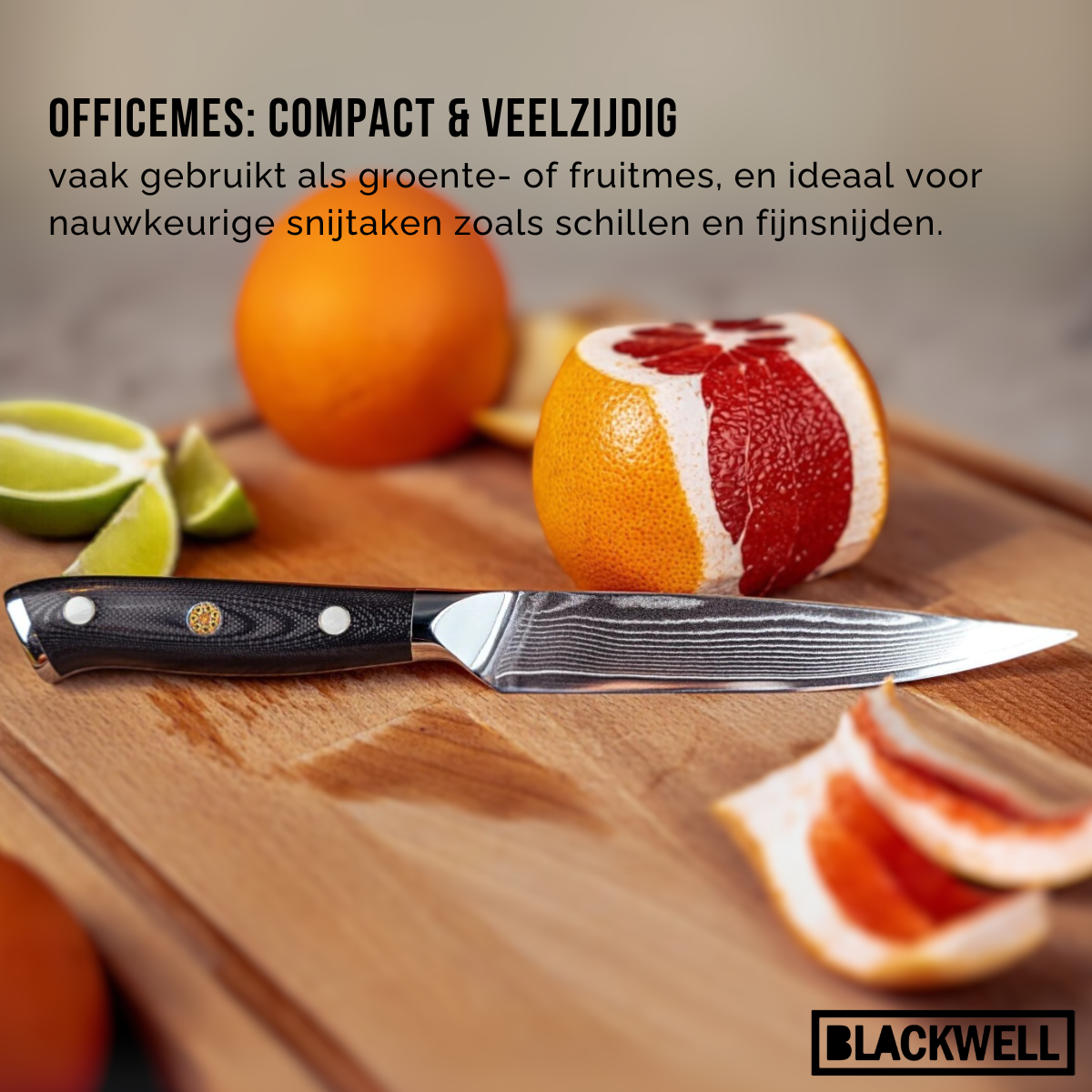 Ben jij een enthousiaste thuiskok of een professionele chef die op zoek is naar een hoogwaardige messenset? De Blackwell messenset is een onmisbare toevoeging aan jouw keukenuitrusting. Deze messenset combineert vakmanschap, duurzaamheid en een strak design om aan al je snijbehoeften te voldoen. Ultieme Scherpte en Duurzaamheid
