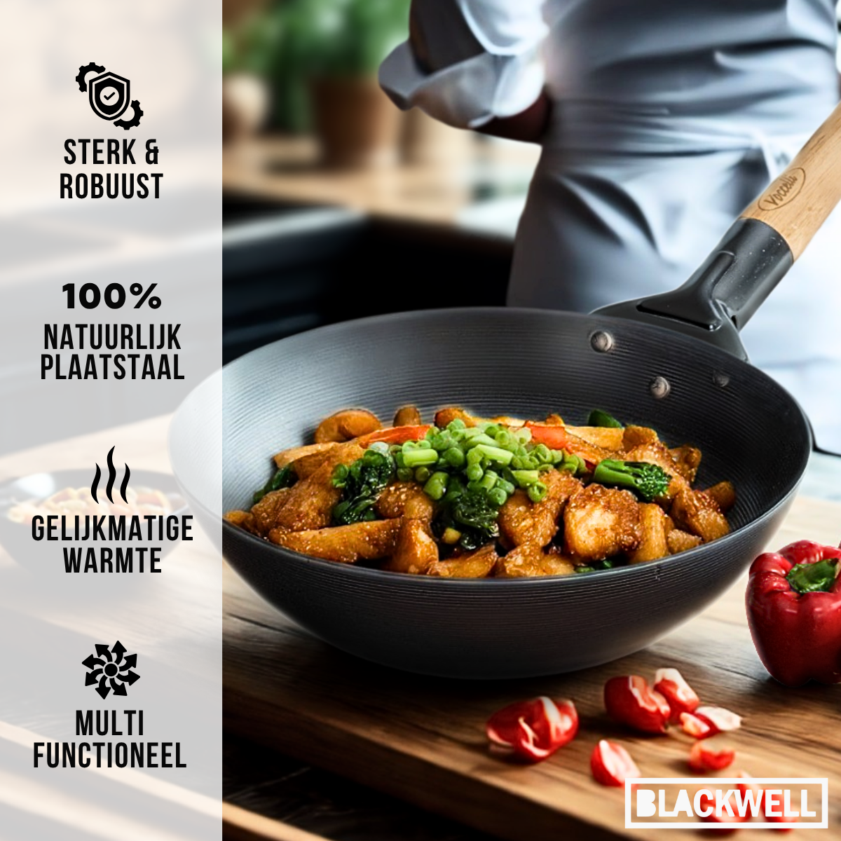 Blackwell Pannenset Voccelli Carbonstaal - Koekenpan ø 28 cm & Wokpan ø 30 cm - zonder anti-aanbaklaag - 2 Delig