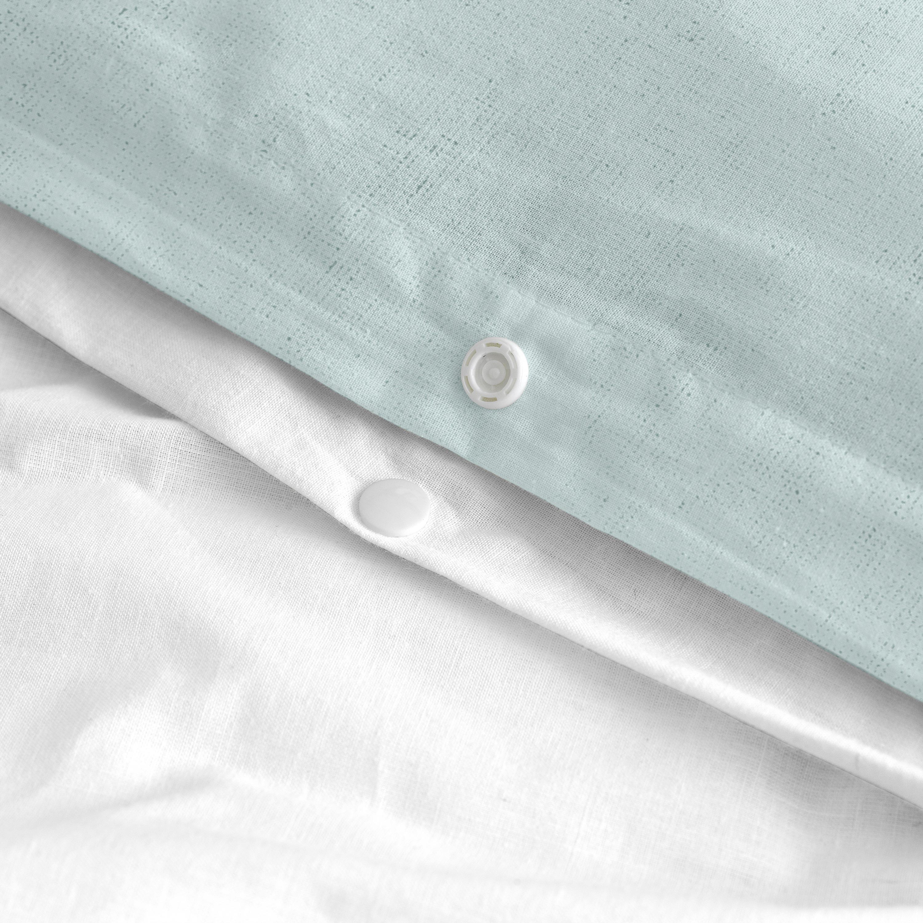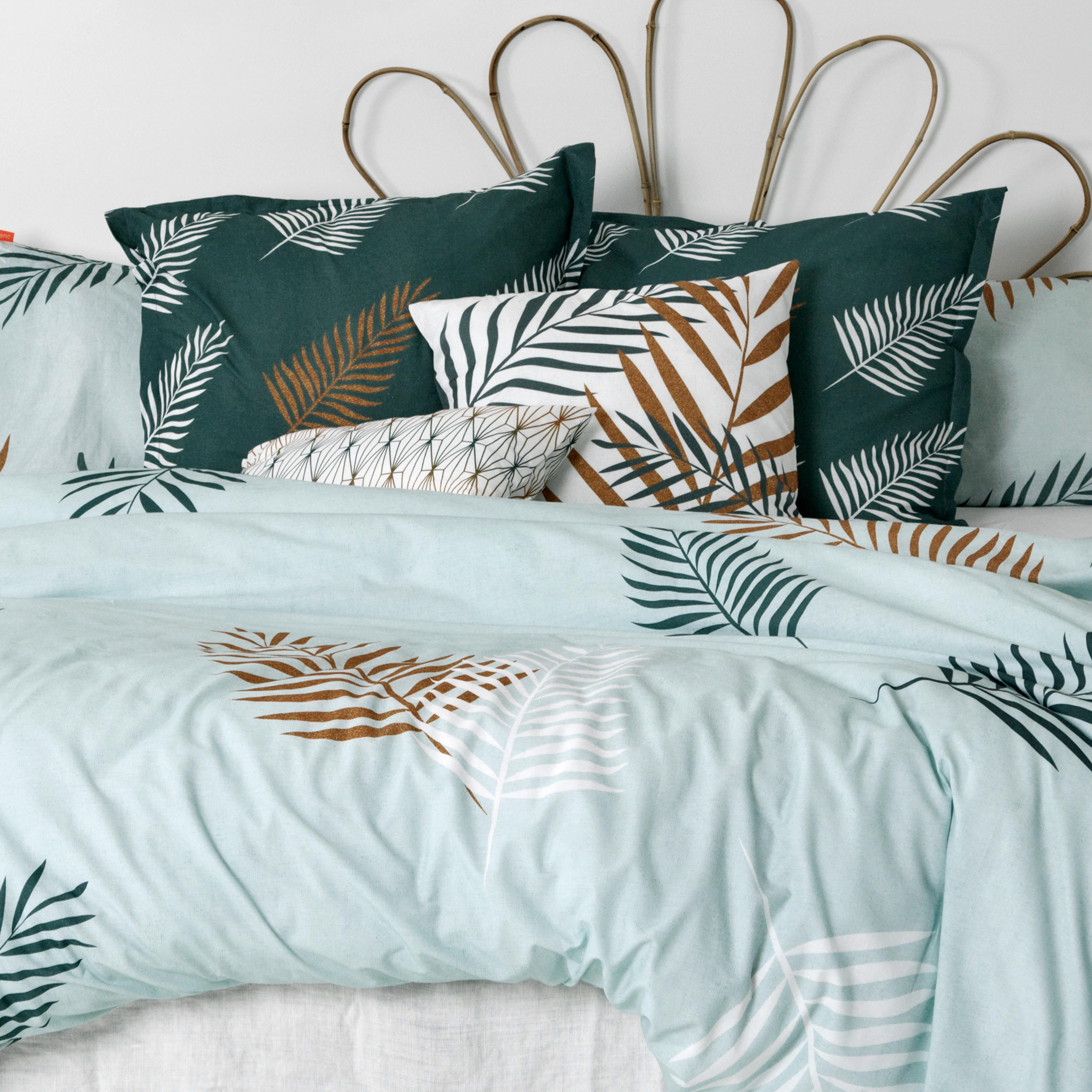 Een gevoel van frisheid zal je kamer vullen als je je bed bedekt met de grote, elegante varenranken op het Foliage Mint dekbedovertrek uit de Blanc Collectie, met een lichtgroene achtergrond en puur witte achterkant. Dit dekbedovertrek is gemaakt in Spanje van 100% katoen met een dikte van 150 draden, wat resulteert in een hoogwaardig, lichtgewicht en ademend product; en de plastic drukknopen maken het gemakkelijk om je beddengoed te verwisselen op wasdag. Kussensloop en hoeslaken niet inbegrepen.