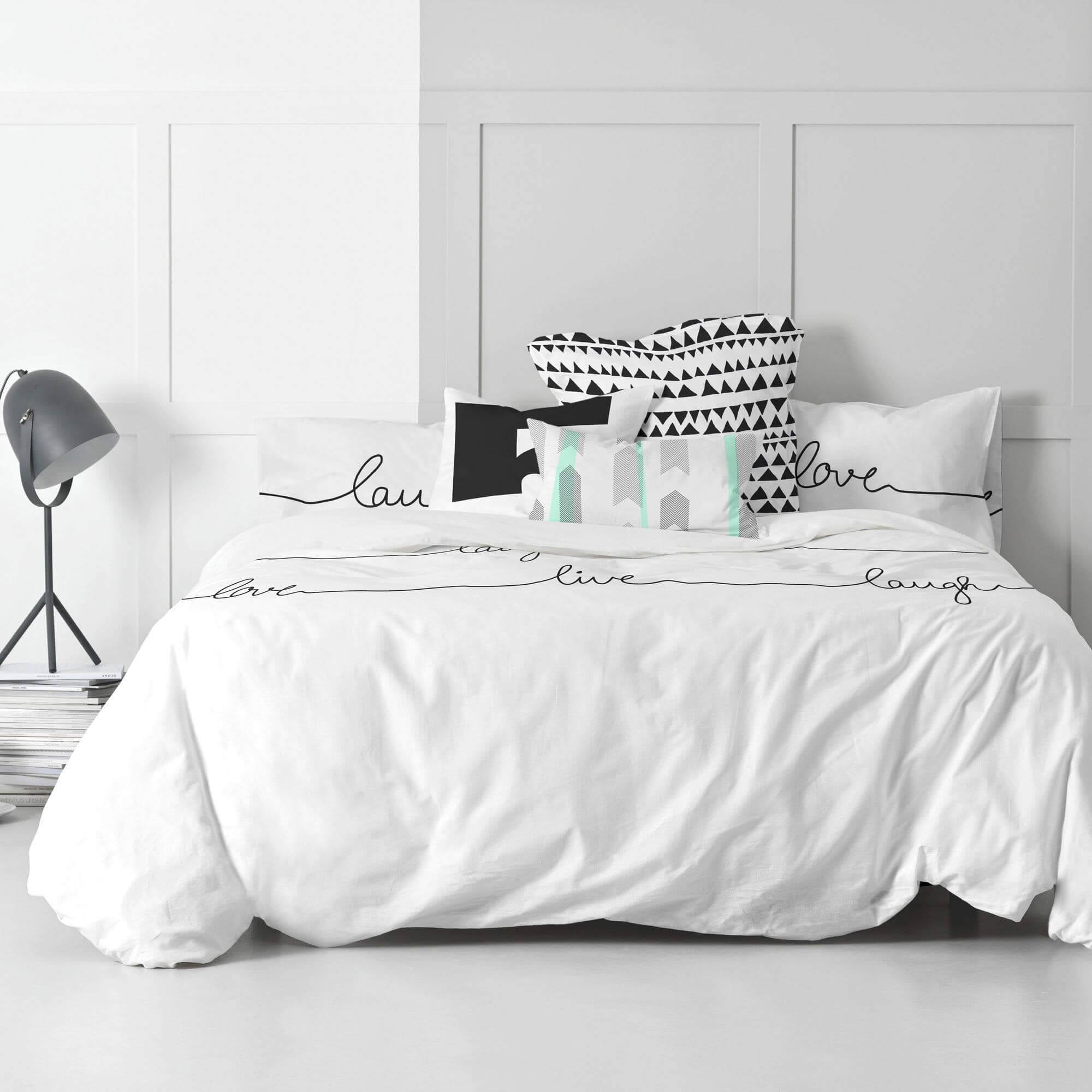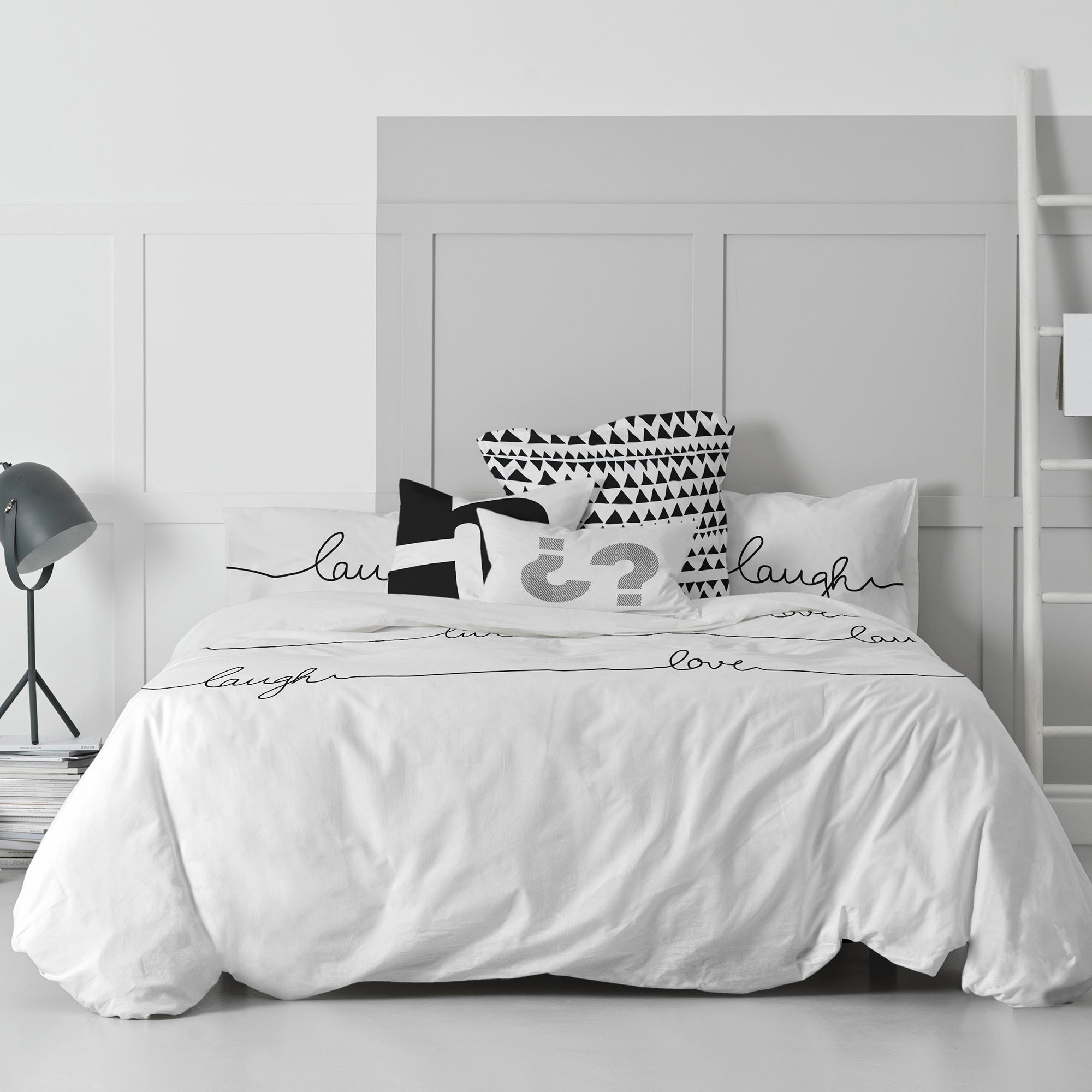Lees tussen de regels door met het motiverende Live dekbedovertrek uit de Blanc collectie en leef elke dag ten volle, heb lief met heel je hart en lach alsof niemand luistert. Dit 150 thread count 100% katoenen product biedt een zachte, lichte en troostende touch. Handig en gemakkelijk te verwisselen dankzij de plastic klittenbandsluiting. Kussensloop en hoeslaken niet inbegrepen.