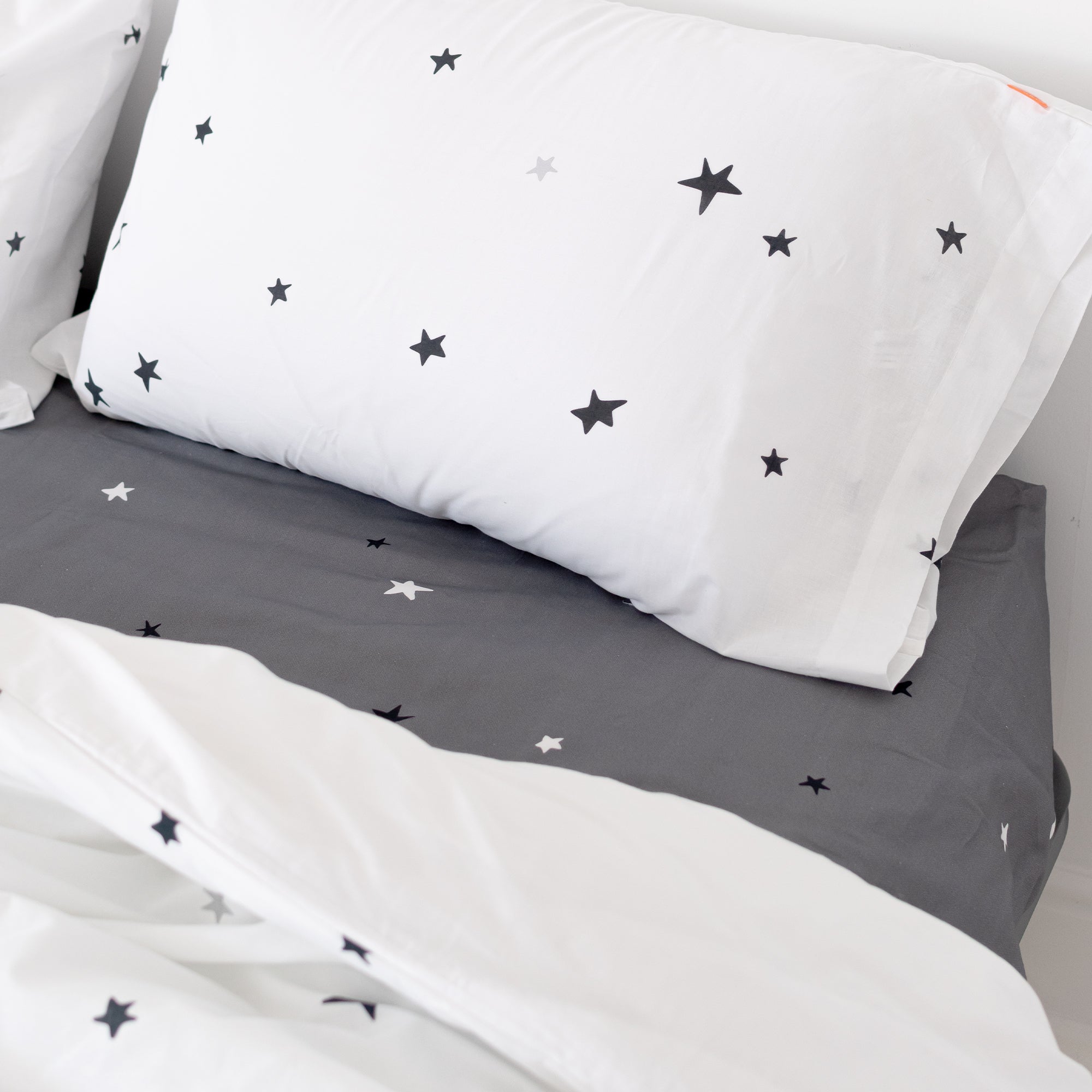 100% katoenen hoeslaken, 150 thread count. De hoeken zijn verstelbaar met elastiek.
