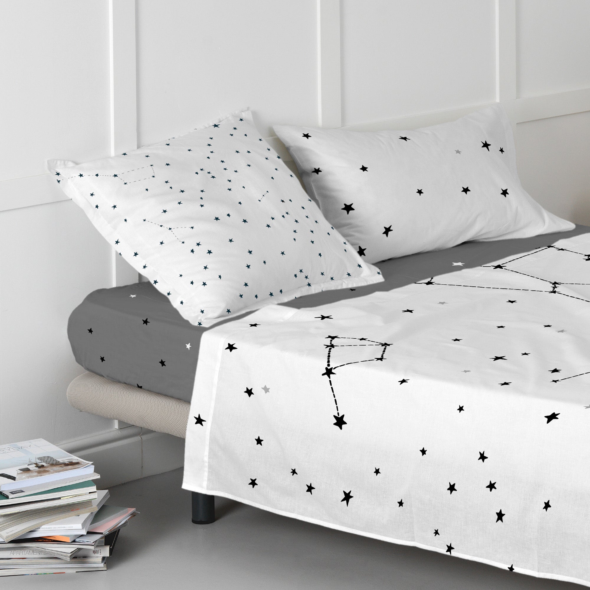 100% katoenen hoeslaken, 150 thread count. De hoeken zijn verstelbaar met elastiek.