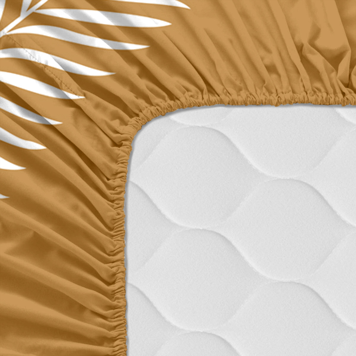 100% katoenen hoeslaken, 150 thread count. De hoeken zijn verstelbaar met elastiek.