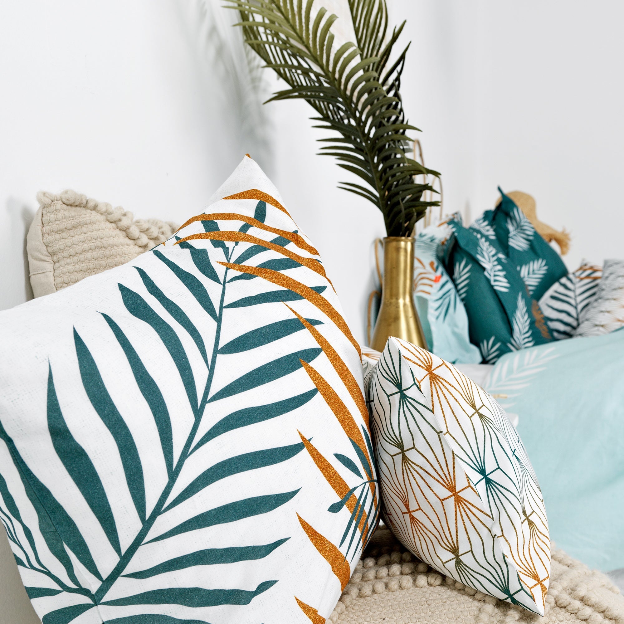 De Foliage Mint kussenhoes uit de Blanc Collectie combineert delicate grijze en gouden varenbladeren met een ruitpatroon voor een vleugje natuur en een grafische touch aan je beddengoed. Deze kussenhoes is gemaakt in Spanje van 100% katoen met 150 draden, voelt zacht aan en biedt comfort om achterover te liggen en te ontspannen aan het eind van de dag. Vullingen zijn niet inbegrepen.