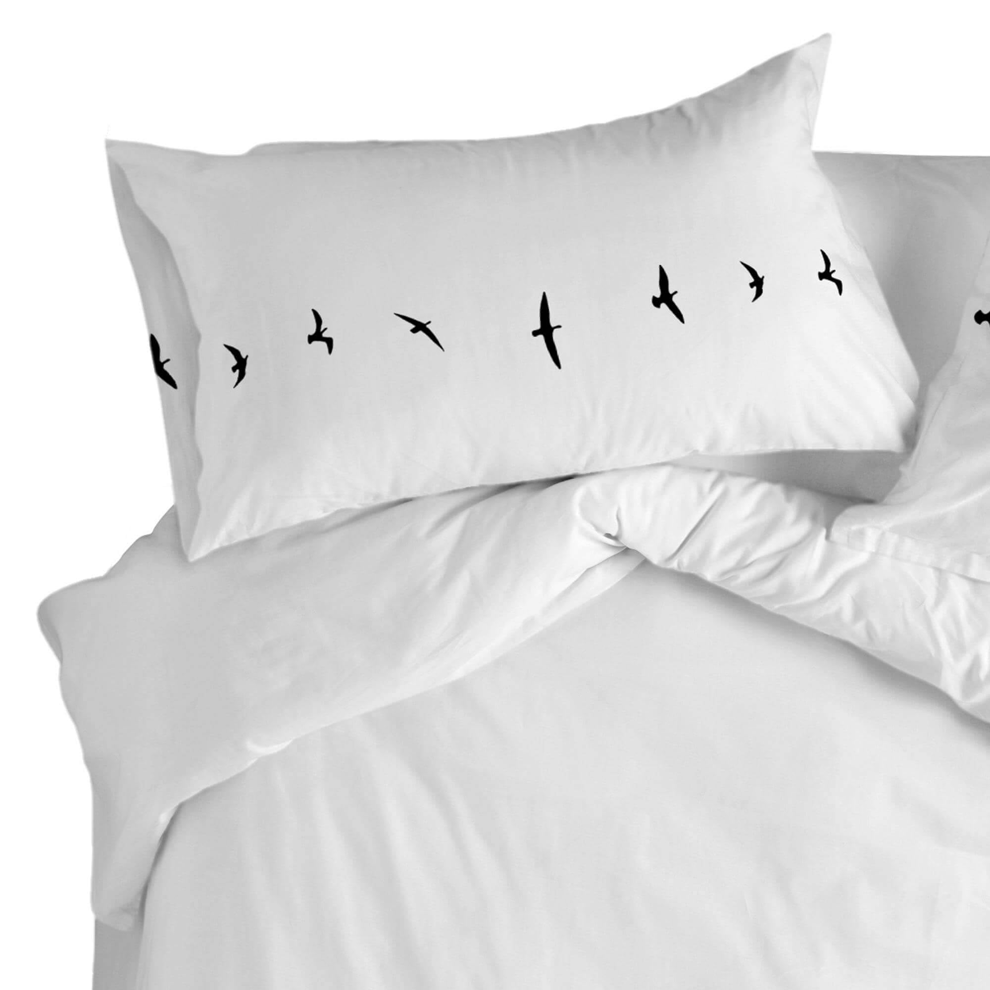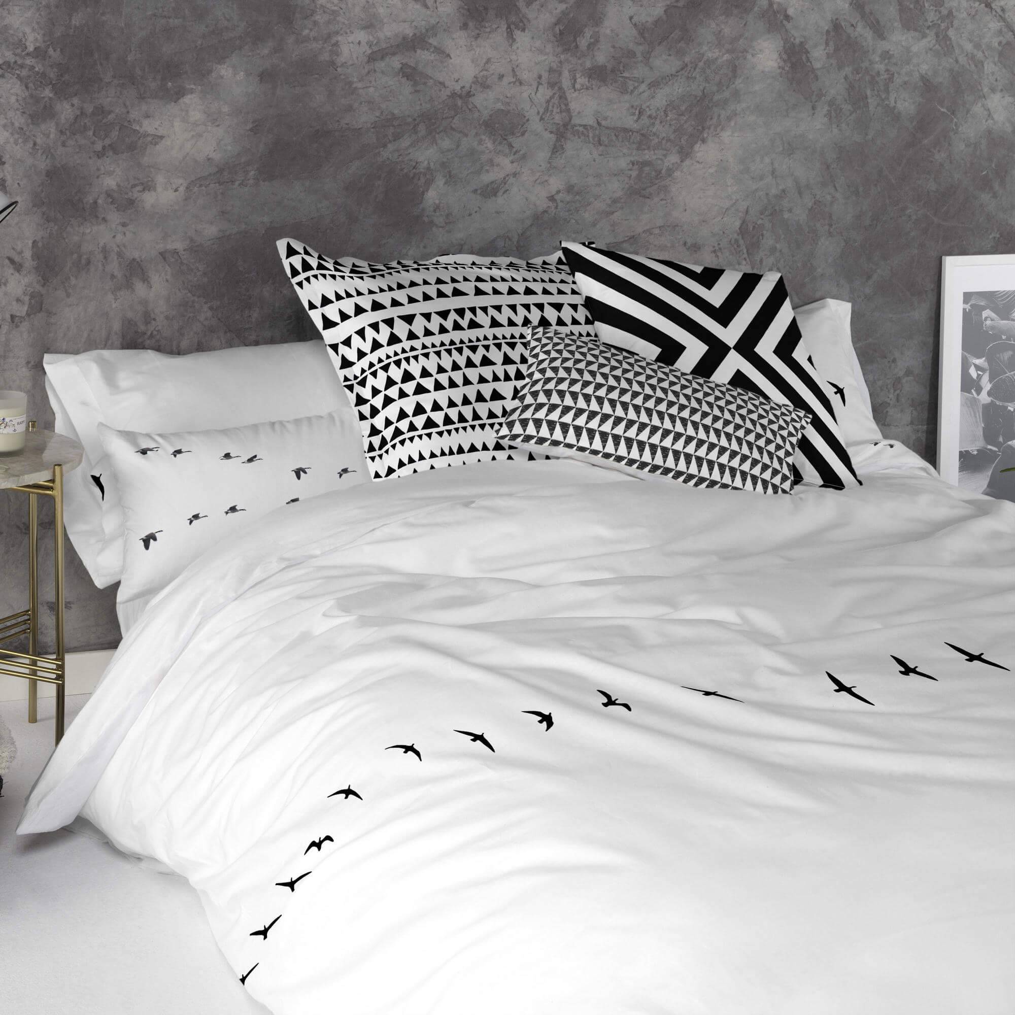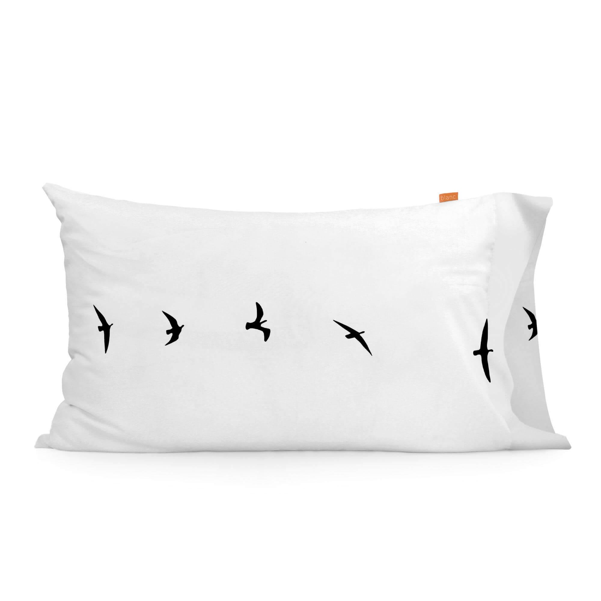 Geef een echt Scandinavisch design aan elke kamer in je huis met kussensloop Trip in wit en het grafische vogelsilhouet. Dit kussensloop is aan beide zijden bedrukt in high definition en kan worden gecombineerd met andere producten uit dezelfde collectie. Vullingen zijn niet inbegrepen.