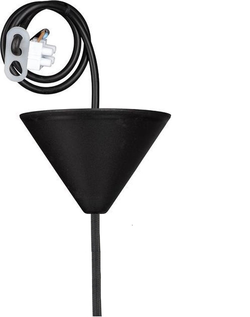 Deze lamp heeft een E27 fitting en is uitgevoerd met een stof omvlochten snoer, dit geeft de lamp nog meer een luxe uitstraling. Het plafondkapje is van rubber gemaakt, hierdoor kan je de plafondkap omvouwen. Dit zorgt dat je de lamp eenvoudig kan ophangen en je het plafond niet beschadigd!