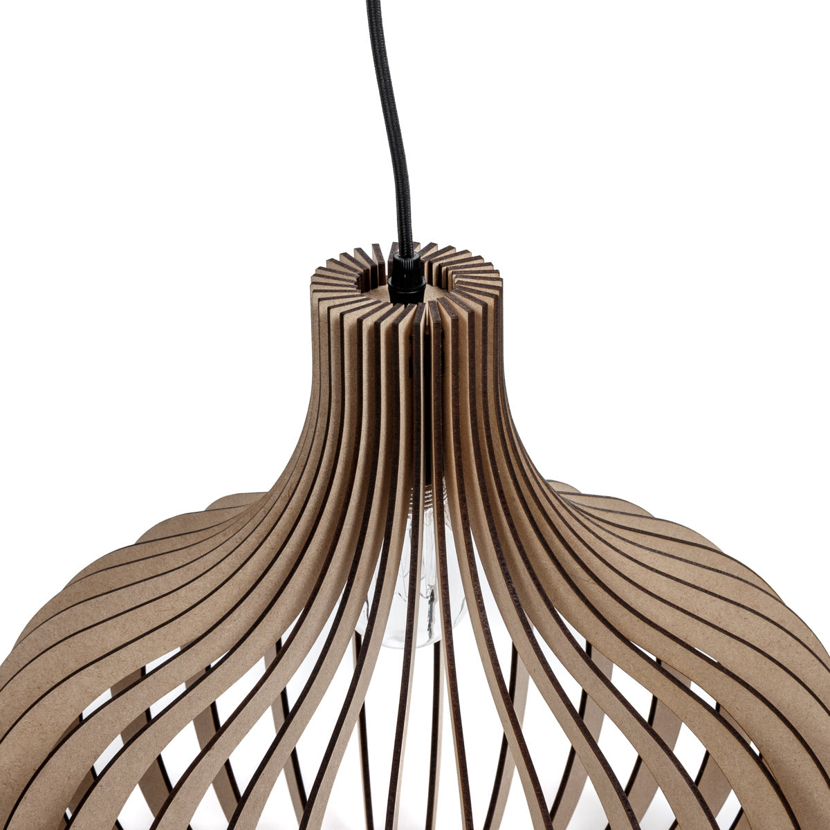 Deze Seattle hanglamp is handmade in Nederland! De MDF houten lamellen worden zorgvuldig met een laser uitgesneden en vervolgens met alle zorg in elkaar gezet. Deze plafonniere is uitgevoerd met houten lamellen die 22,5° gekanteld in het frame zijn gemonteerd, dit geeft de lamp nog meer een trendy uitstraling.