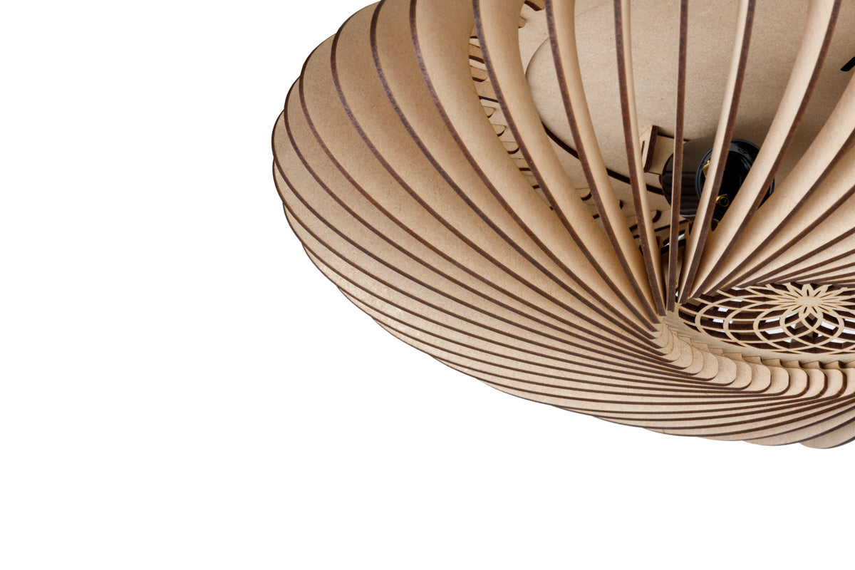 Deze Swan plafondlamp is handmade in Nederland! De MDF houten lamellen worden zorgvuldig met een laser uitgesneden en vervolgens met alle zorg in elkaar gezet. Deze plafonniere is uitgevoerd met houten lamellen die 45° gekanteld in het frame zijn gemonteerd, dit geeft de lamp nog meer een trendy uitstraling. Deze lamp heeft 2 x een E27 fitting en wordt geleverd exclusief de lichtbronnen. Wij adviseren een mooie spiraal led-lamp uit onze brede collectie lichtbronnen.