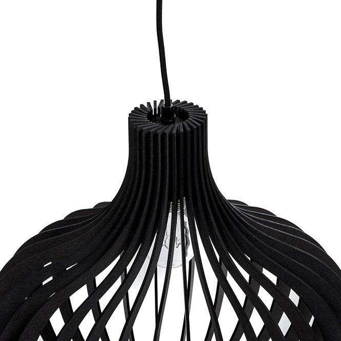 De Seattle hanglamp van het merk Blij Design is gemaakt van MFD-hout die samen komen tot een druppelvormig design. Deze Seattle hanglamp mag zeker niet ontbreken binnen o.a. uw industriële, vintage etro of Scandinavische interieur. De kleur zwart is tegenwoordig een neutrale kleur die passend is binnen elk interieur. De kap van de Seattle hanglamp heeft een doorsnede van 40 cm en is 36 cm hoog. Doordat deze kap hangt aan een zwart snoerpendel van 150 cm lang, heeft hij een maximale hoogte van 186 cm. In de fitting is een E27-fitting verwerkt voor maximaal 40 watt. Maak een keuze voor een mooie bolvormige LED bol zodat u de Seattle kunt laten stralen in uw interieur. Eventueel is de Seattle ook verkrijgbaar in de kleur: naturel.