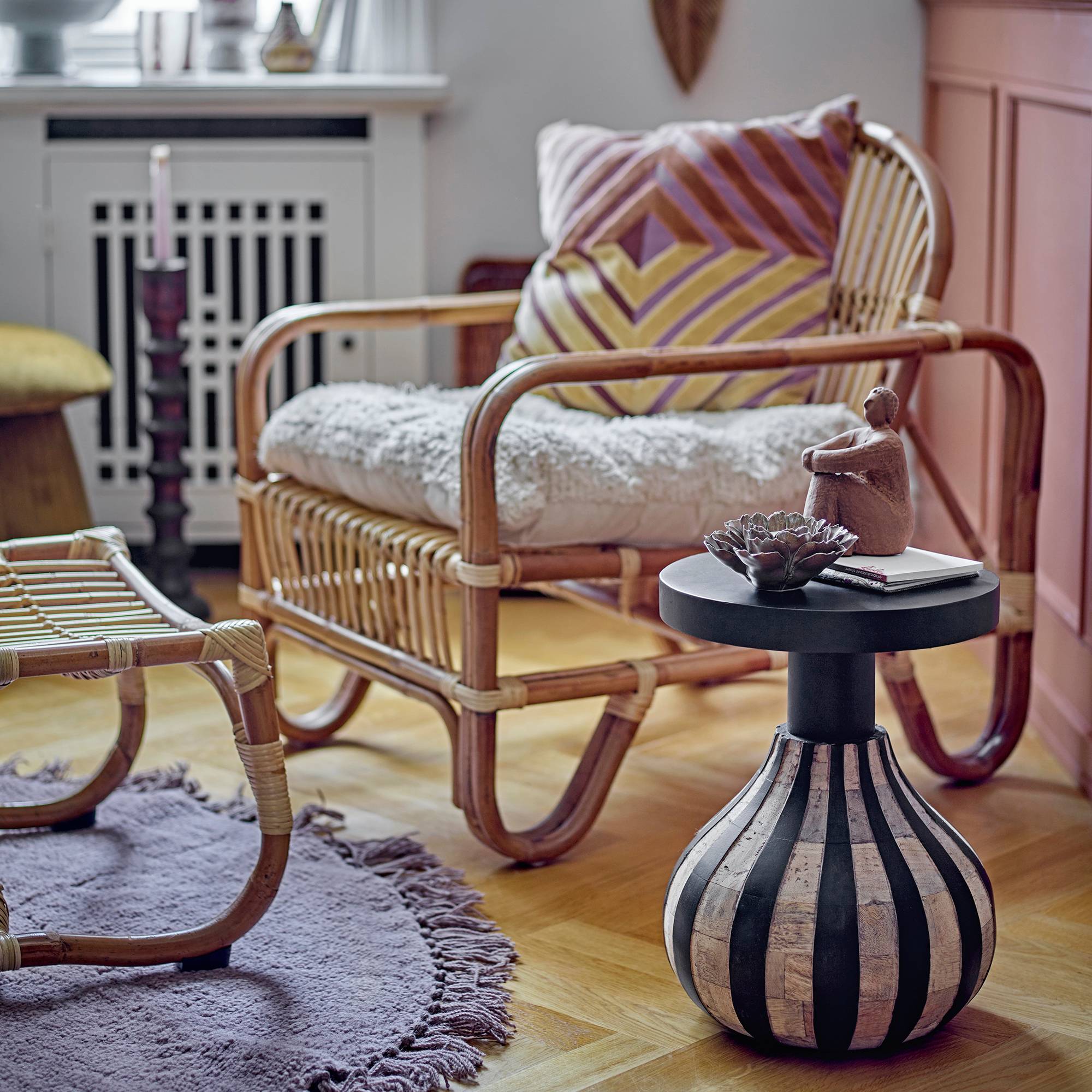 - Bijzettafel met gestreept effect van H 39,5 x Ø 29 cm