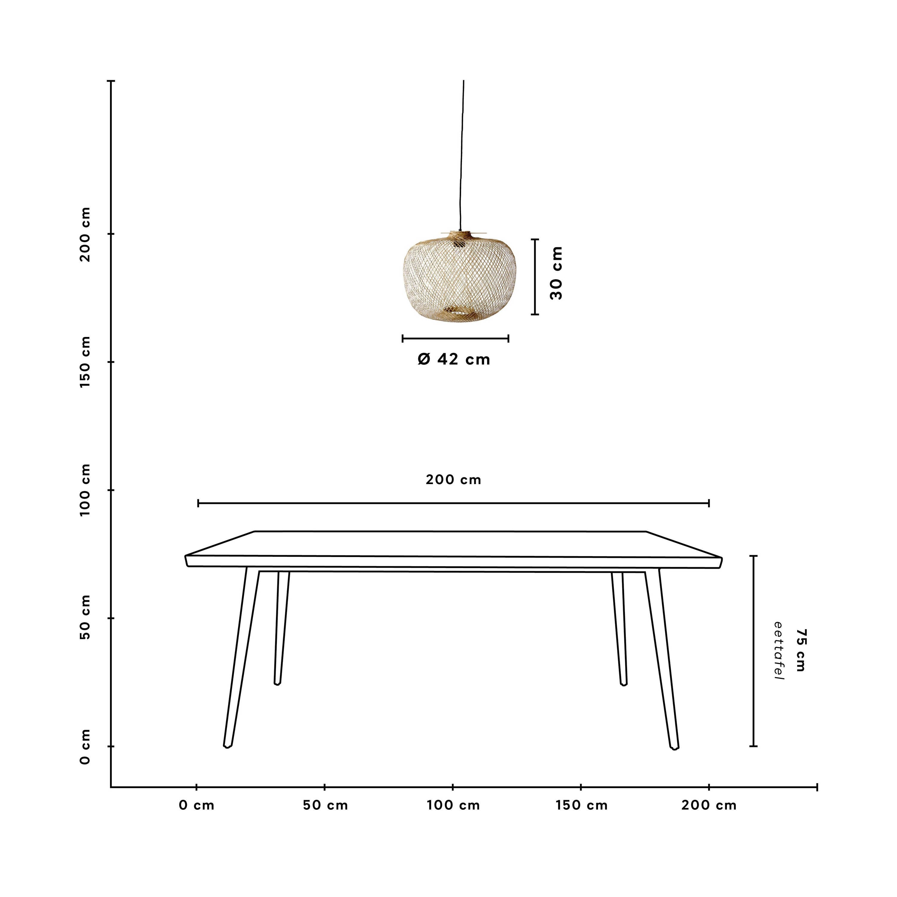 Deze stijlvolle hanglamp is gemaakt van strookjes bamboe die met de hand zijn gevlochten. Hierdoor heeft elke lamp een eigen unieke uitstraling die dus nooit helemaal perfect rond is. Ook een klein kleurverschil is mogelijk doordat het een natuurproduct is. Dit geeft wel een speels effect aan jouw Bohemian interieur, want daar hoeft niet alles perfect te zijn!