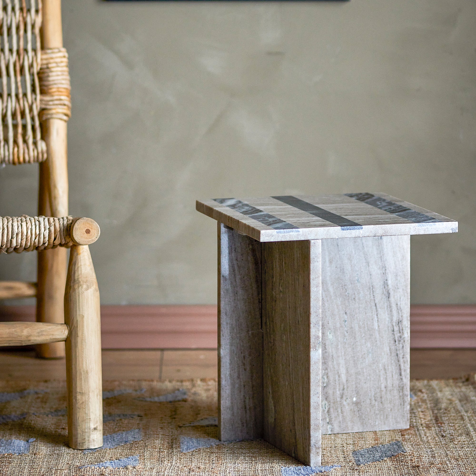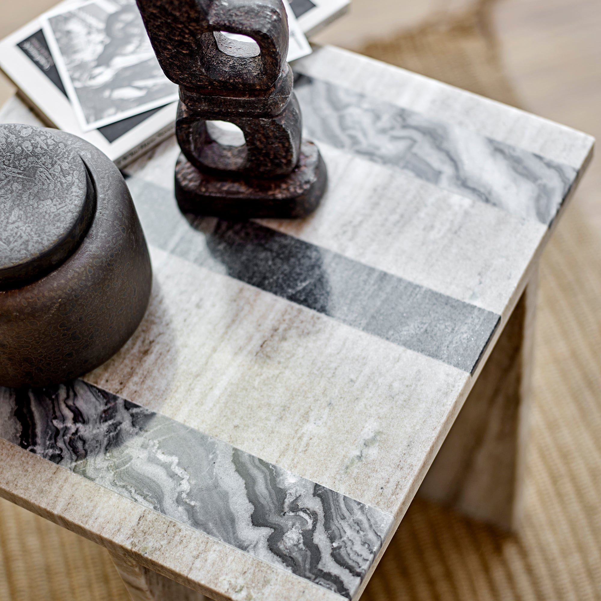 - Marmeren bijzettafel van H 40 x B 35,5 x D 35,5 cm