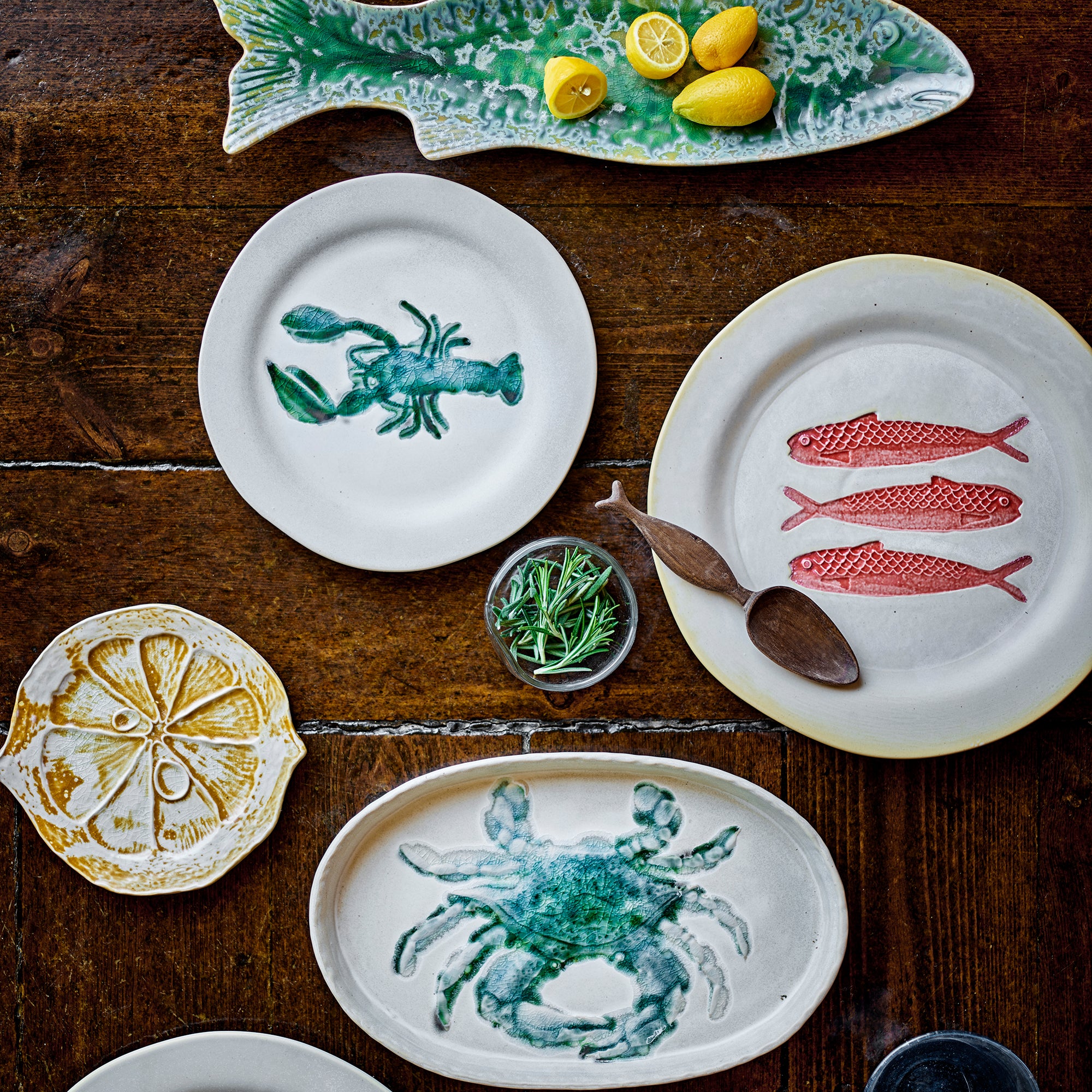 Bloomingville Hadden Dinerbord 4 st. - Ø 27 cm - Vissen / Groen