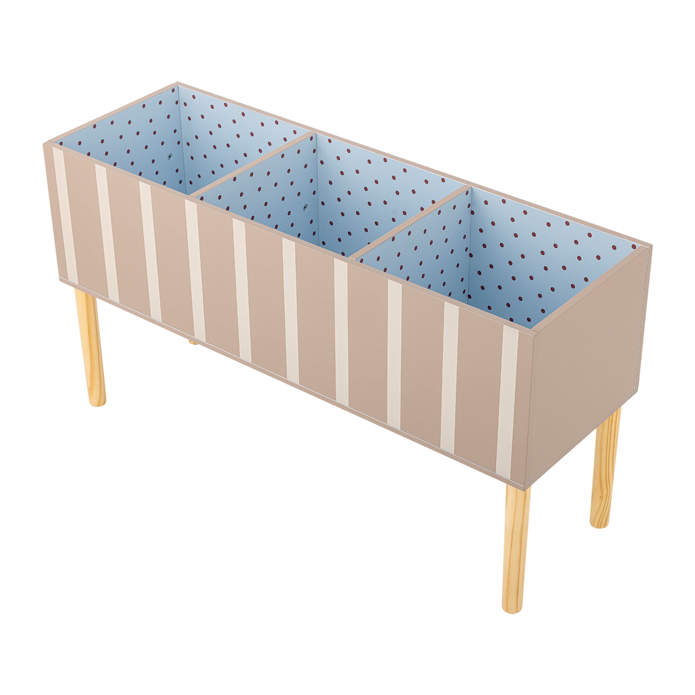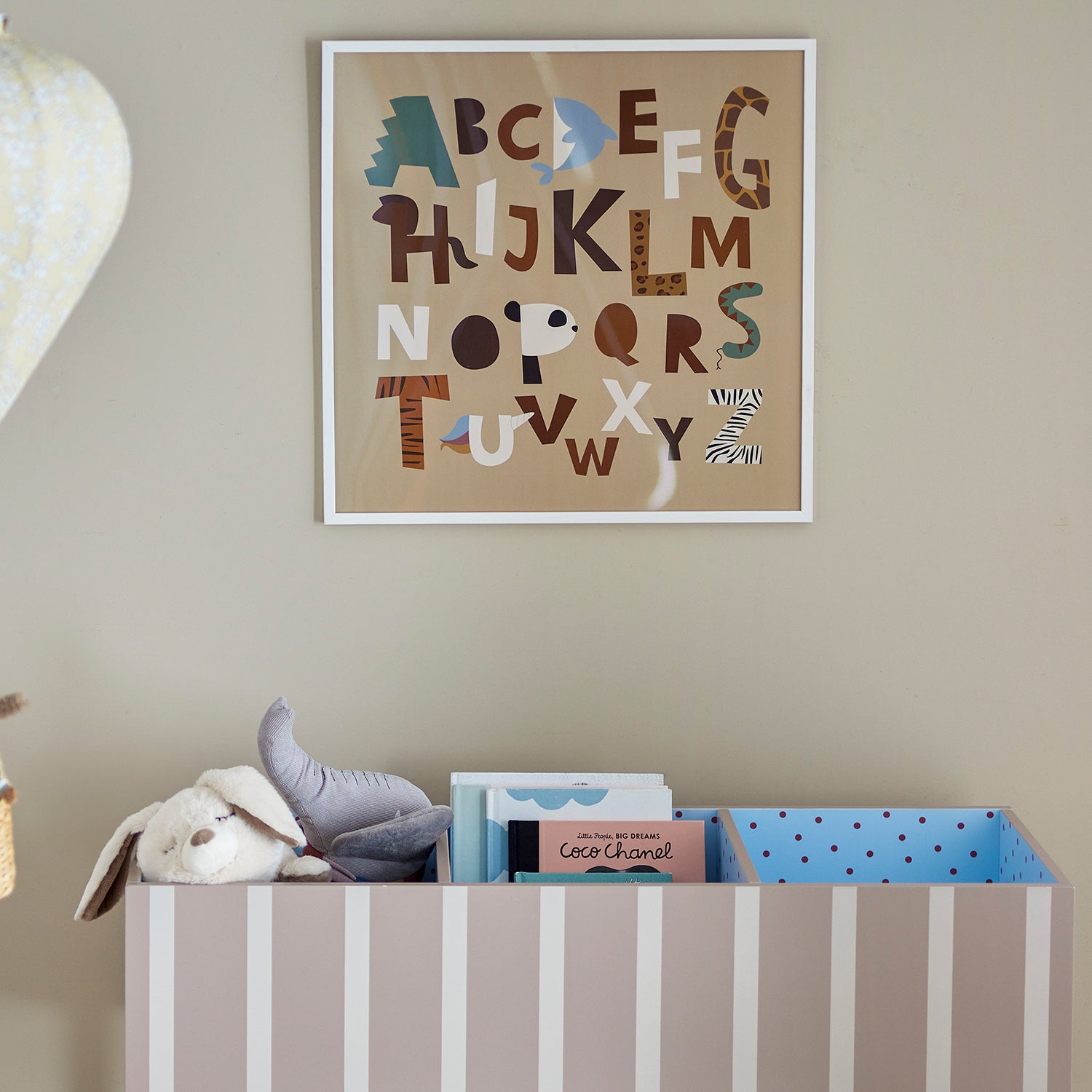 - Open vakken voor boekjes, knuffels en kleine treasures