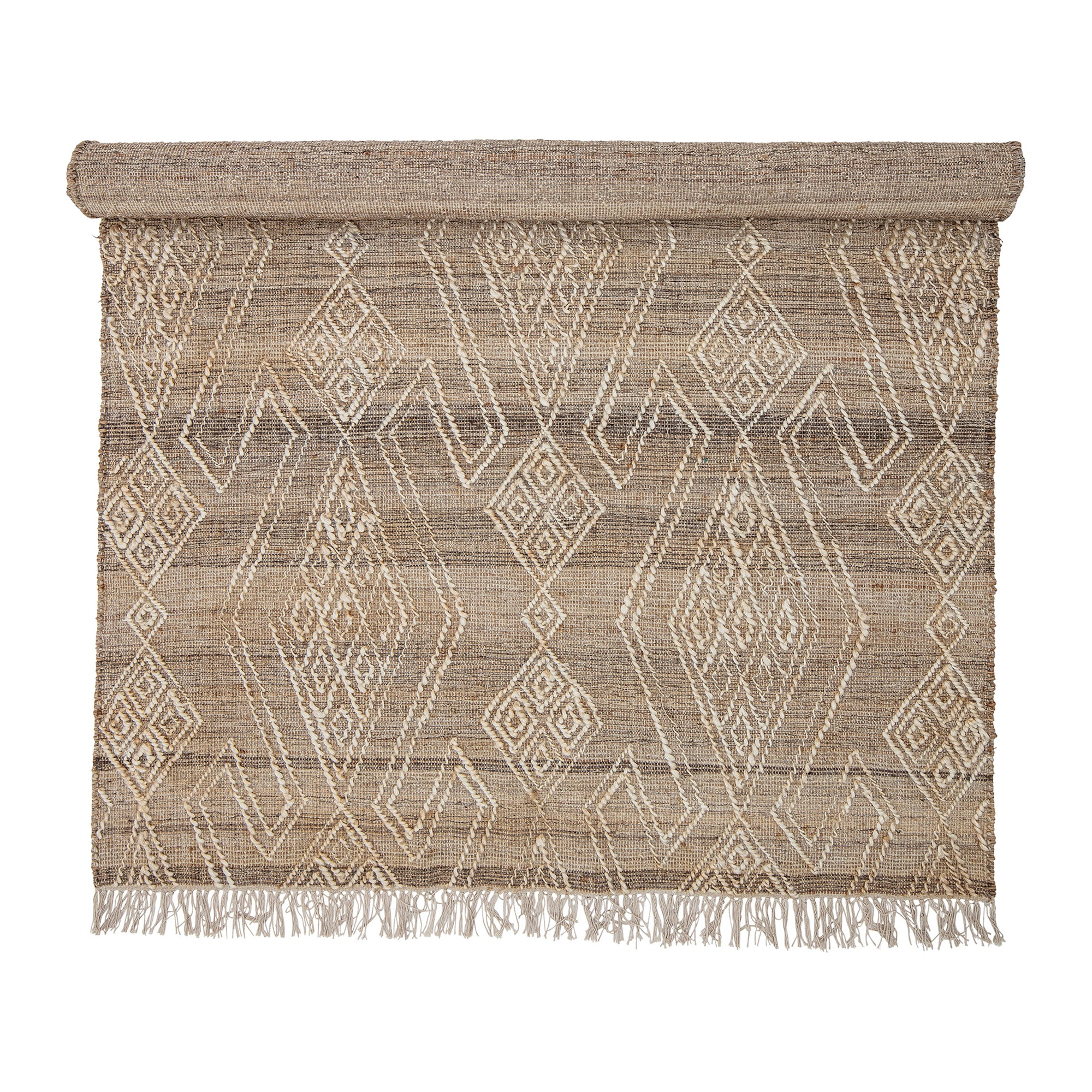 - Ton-sur-ton geweven patroon met subtiele franjes