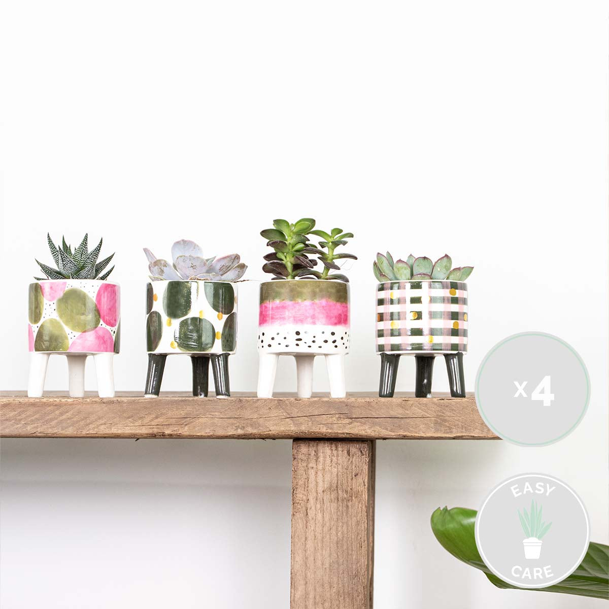 - ROZE EN GROENE POTJES: Deze set succulenten wordt geleverd in verschillende roze en groene potjes. Een leuke toevoeging voor ieder interieur!