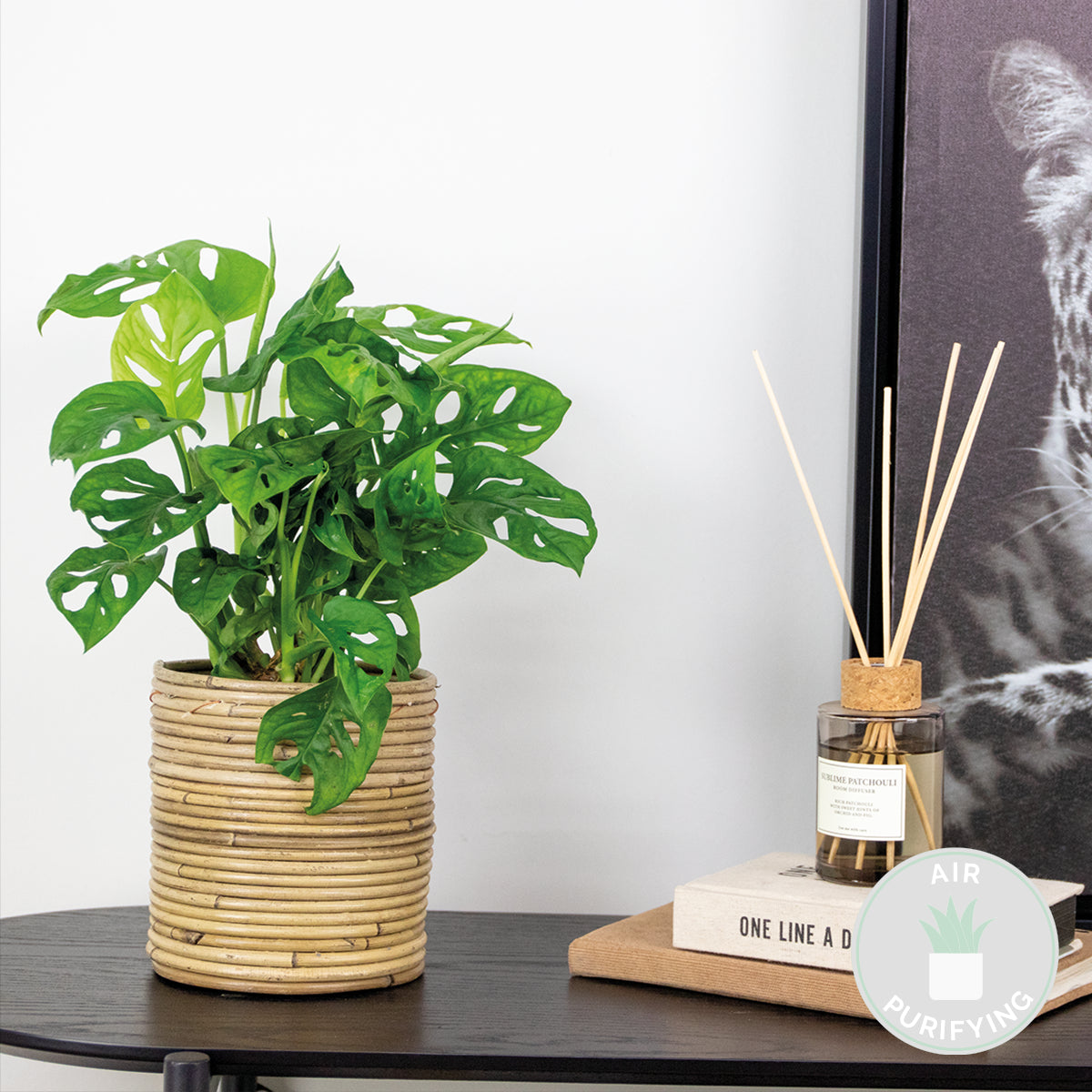 Dit monster(a) wordt ook wel Monstera adansonii 'Monkey Leaf' genoemd. Deze gatenplant is een regelrechte tropische hunk door zijn grote groene bladeren die ook nog eens luchtzuiverend zijn. Op deze manier produceert hij extra zuurstof en filtert hij schadelijke stoffen uit de lucht. Deze groene rakker is snel oververhit, vergeet hem dus niet geregeld een beetje af te koelen. Heel erg eigenwijs is de Monkey Leaf niet, hij stelt niet veel eisen en is erg onderhoudsvriendelijk. Hij is helemaal uit Mexico gekomen, dit is toch wel het plantje van onze dromen! Specificaties - Wordt per stuk geleverd - De leveringshoogte van deze plant is 20-25 cm (gemeten van de onderkant van de kweekpot tot aan de bovenkant van de plant) - Geleverd in een kweekpot van ⌀12 cm - Luchtzuiverend - Giftig voor huisdieren Verzorging - Water: 1x per week 1/3 water (let op: er wordt hierbij uitgegaan van een standaard gieter met een inhoud van 1 liter). - Standplaats: Half-schaduw (lichte plek zonder direct zonlicht) Let op: houd rekening met zo’n +/- 2 tot 3 meter afstand van het raam mits het raam aan de noordkant gesitueerd is. - Onderhoud: Groei ik te uitbundig of zijn mijn bladeren niet meer mooi, knip dan met een schaar de hele stengel eraf – knip je niet teveel weg? Voeding geven mag alleen in mijn groeiperiode (lente en zomer) dit mag dan eens in de twee weken. Hoe wij verzenden Dankzij onze slimme verpakkingstechniek blijven jouw planten mooi op hun plek staan en arriveren ze ongekreukt op hun bestemming. We gebruiken verpakkingen die speciaal zijn ingericht voor planten. Zo krijgen ze zo lang mogelijk licht en blijven de wortels, bladeren en bloemen van de plant beschermd tijdens hun reis van de kweker naar jou. Iedere plant is uniek. De verschillende groeiomstandigheden kunnen voor een andere uitkomst zorgen dan afgebeeld op de foto. Ga daarom voor aankoop goed na of deze planten geschikt zijn voor jouw huis of tuin.