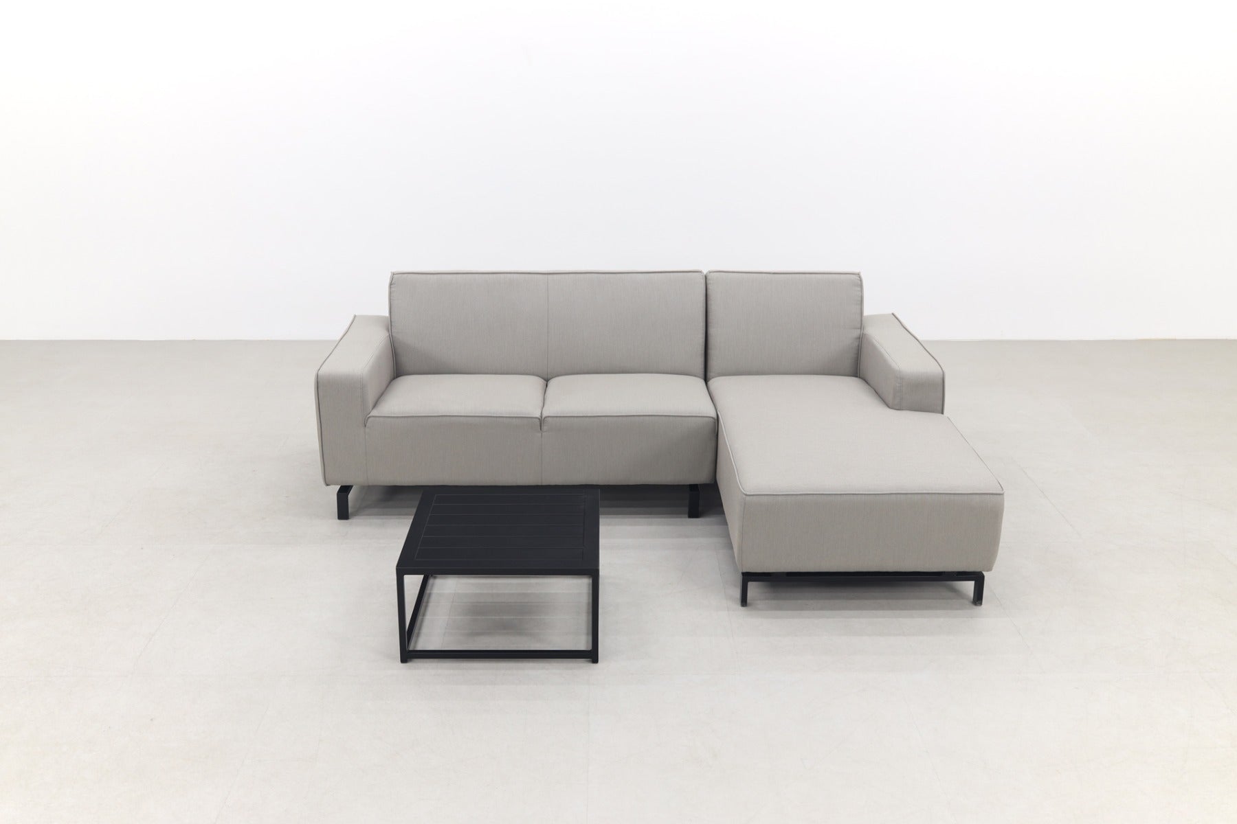 1x chaise longue linker leuning 1x 2-zits bank met rechter leuning 1x bijzettafel 60x60 cm.