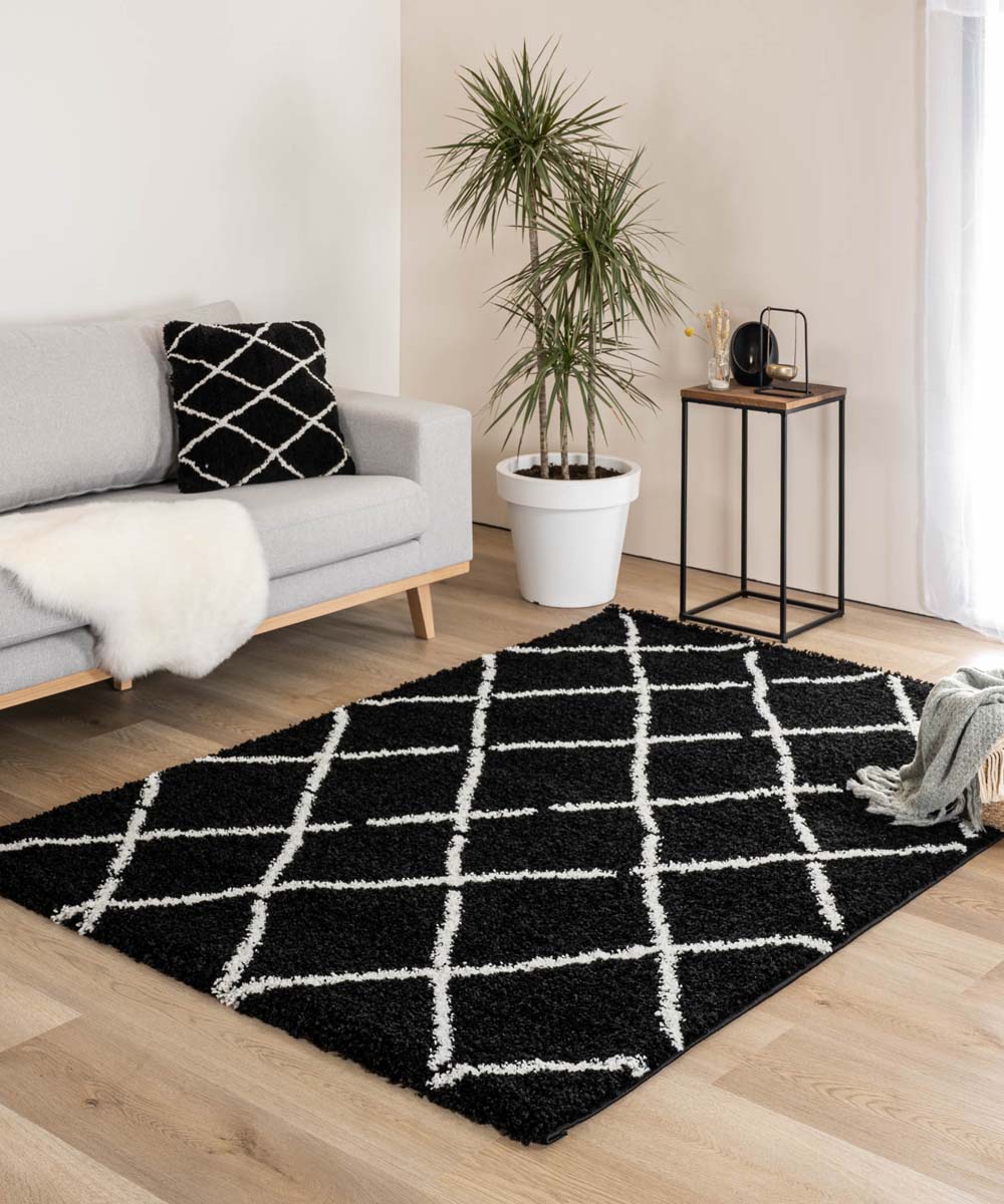 Boho&me Hoogpolig vloerkleed ruiten Artisan - zwart|wit - 100x200 cm