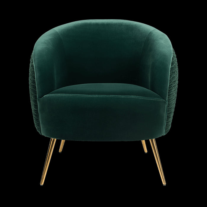 - Deze compacte fauteuil heeft een prachtig accent op de achterkant met een kunstig geplooide stof