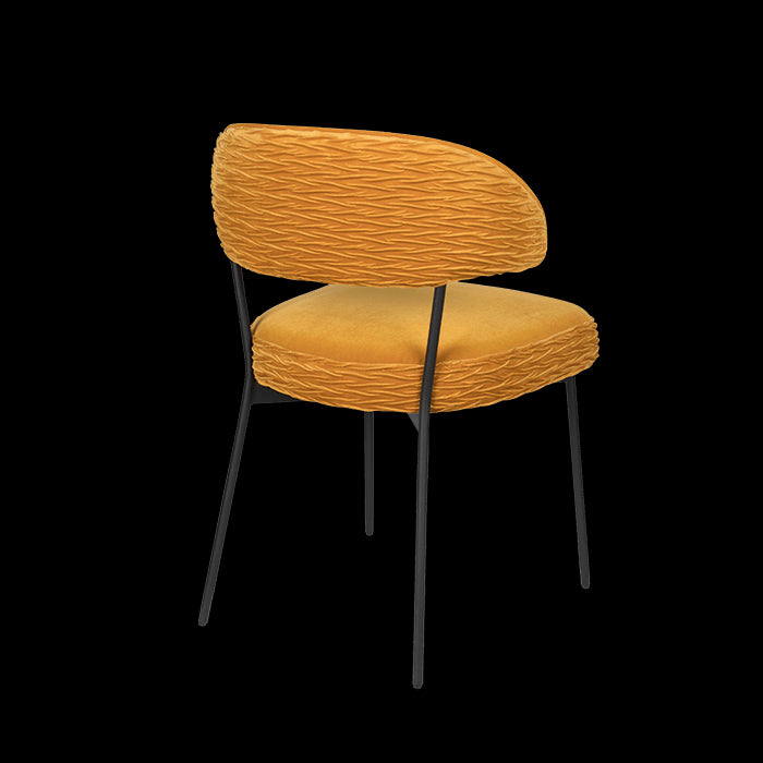 - Deze eetkamerstoel staat op slanke poten, dat houdt hem luchtig
