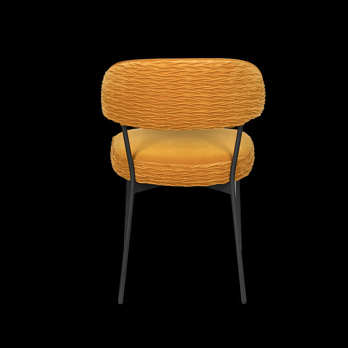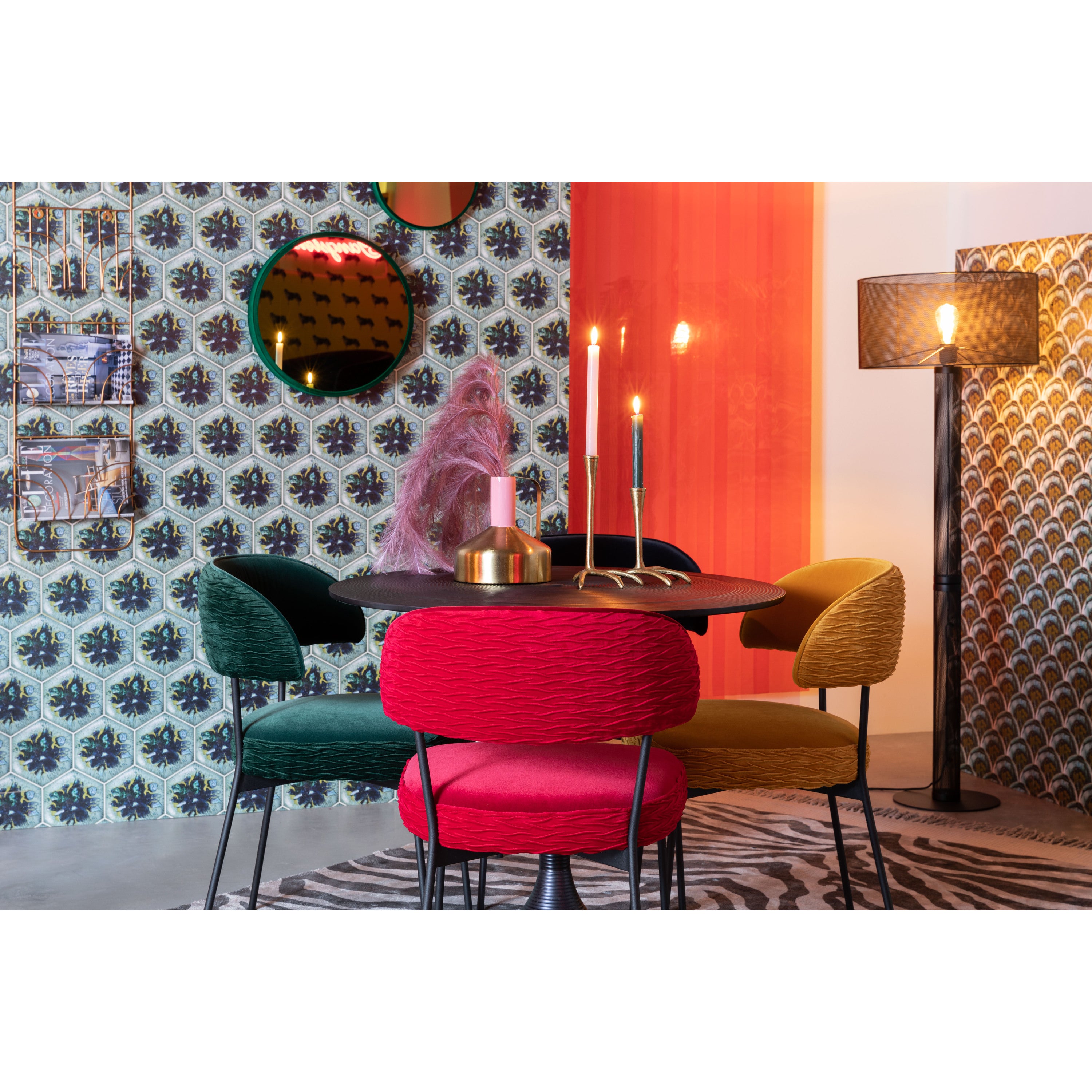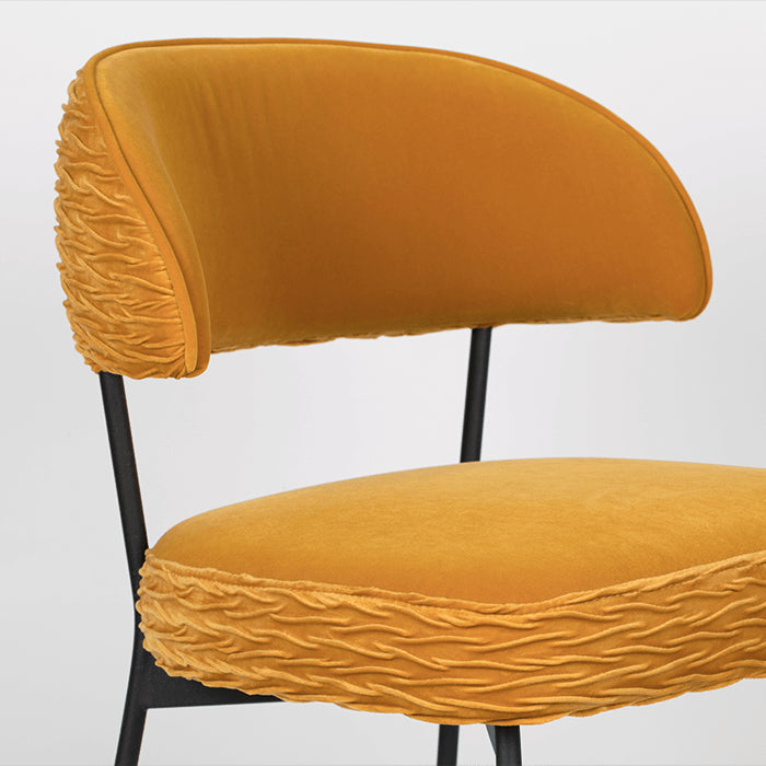 - De rug en de dikke zitting is voorzien van een prachtig accent met de kunstig geplooide stof