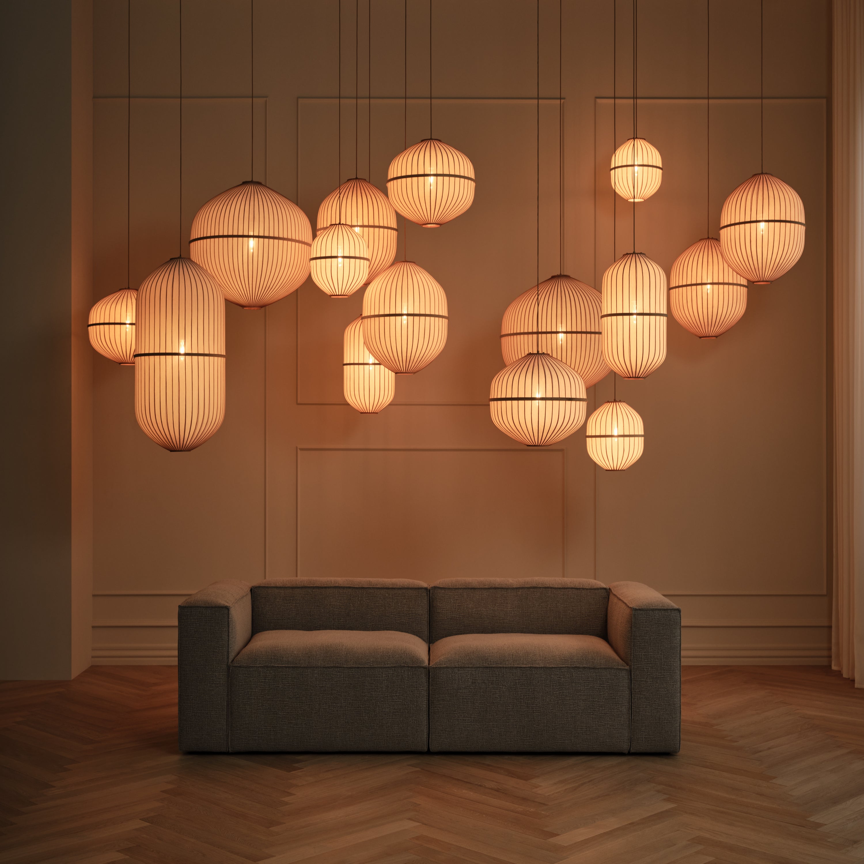 - Gedrapeerde, luchtige stof zorgt voor een zachte, warme lichtverspreiding