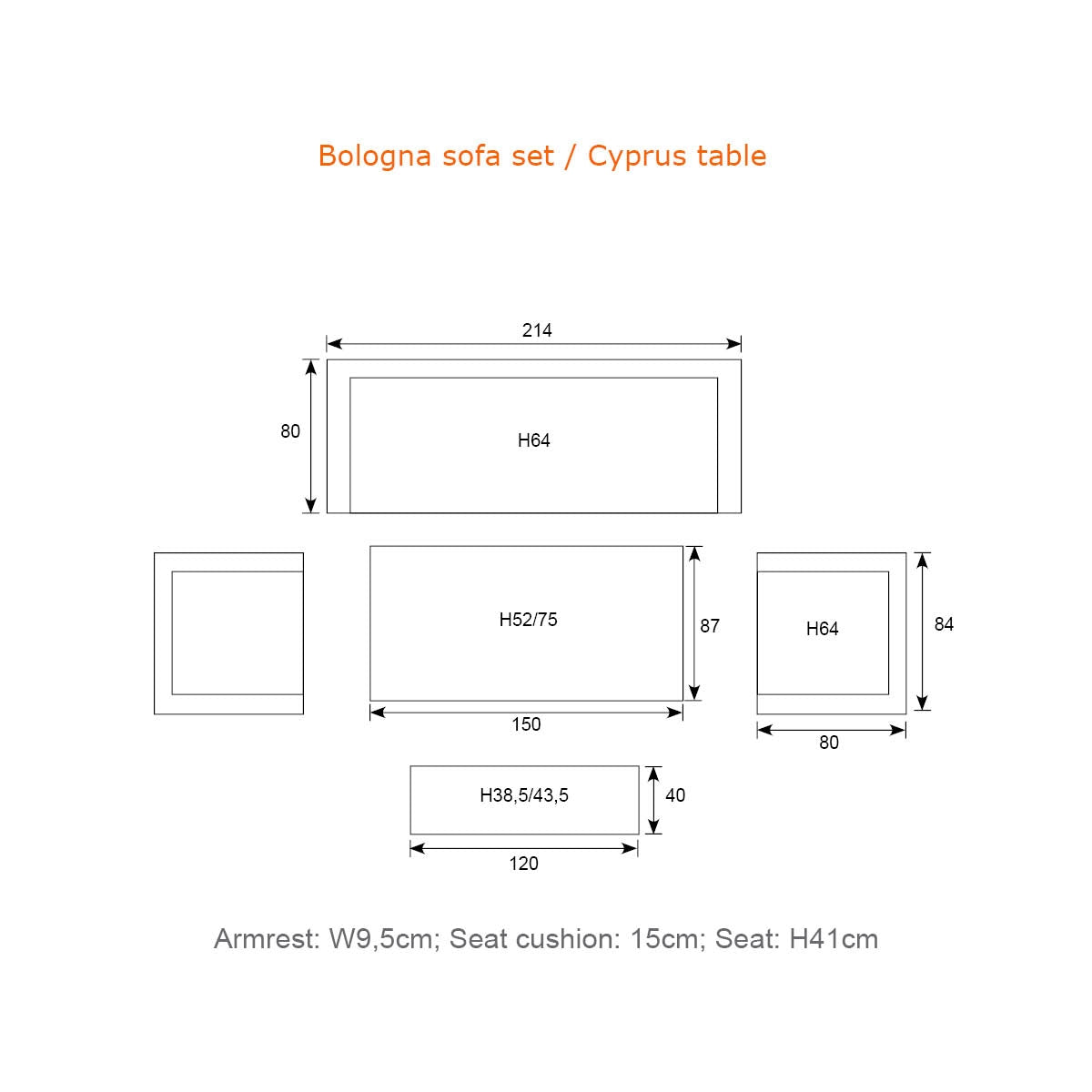 De afmetingen van de stoel zijn 80 x 84 x H64 cm, met een zithoogte van 41 cm. Gebruik de Bologna lounge stoel om je hoekset uit te breiden, of maak met meerdere stoelen een heerlijk zitje in je tuin. De Bologna serie biedt verschillende delen die je kunt combineren.