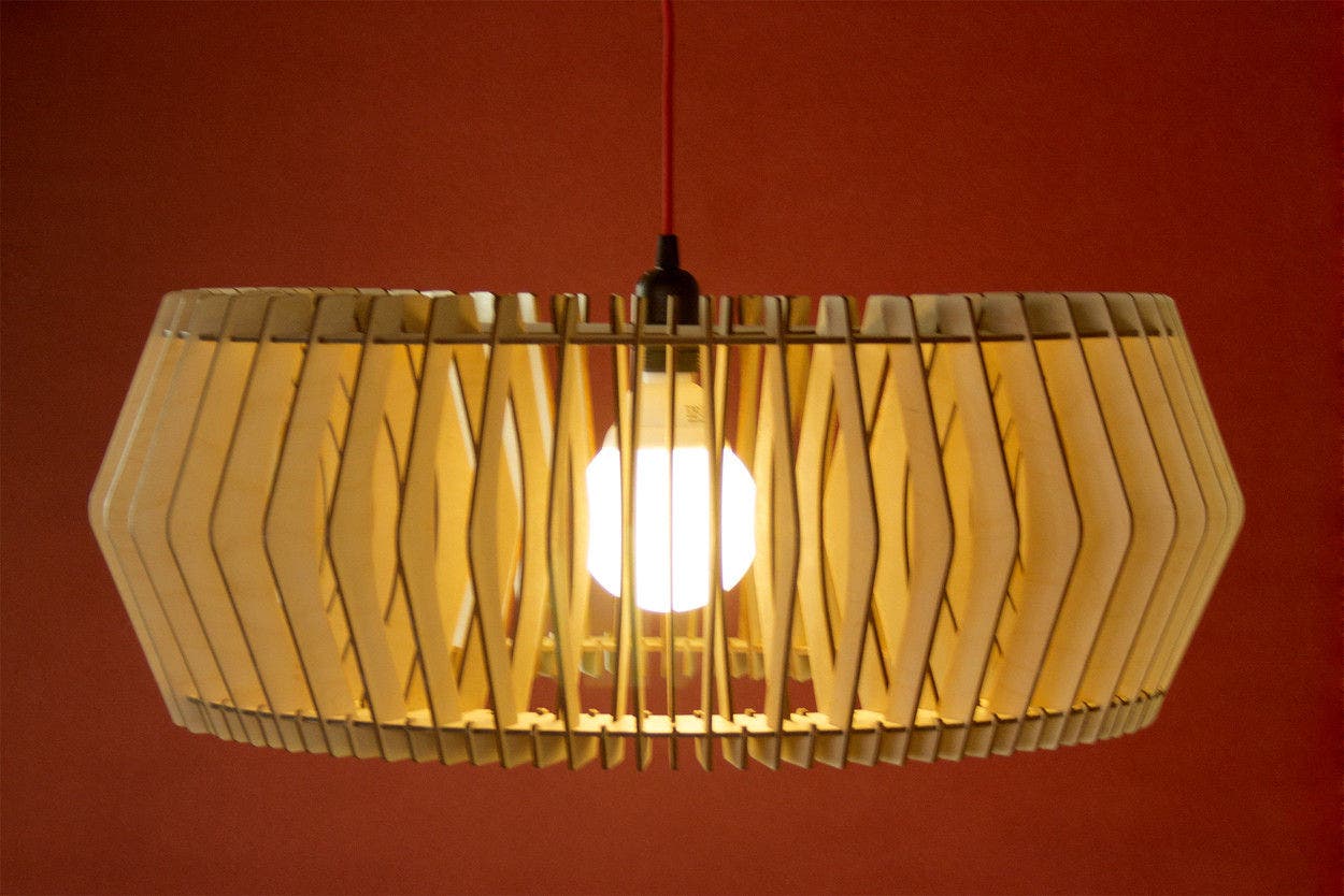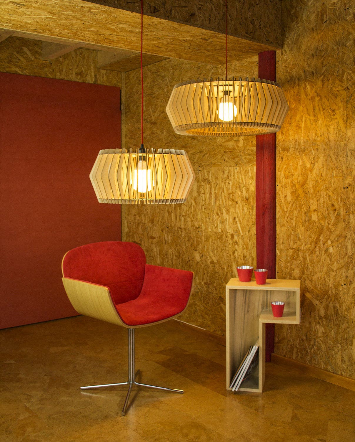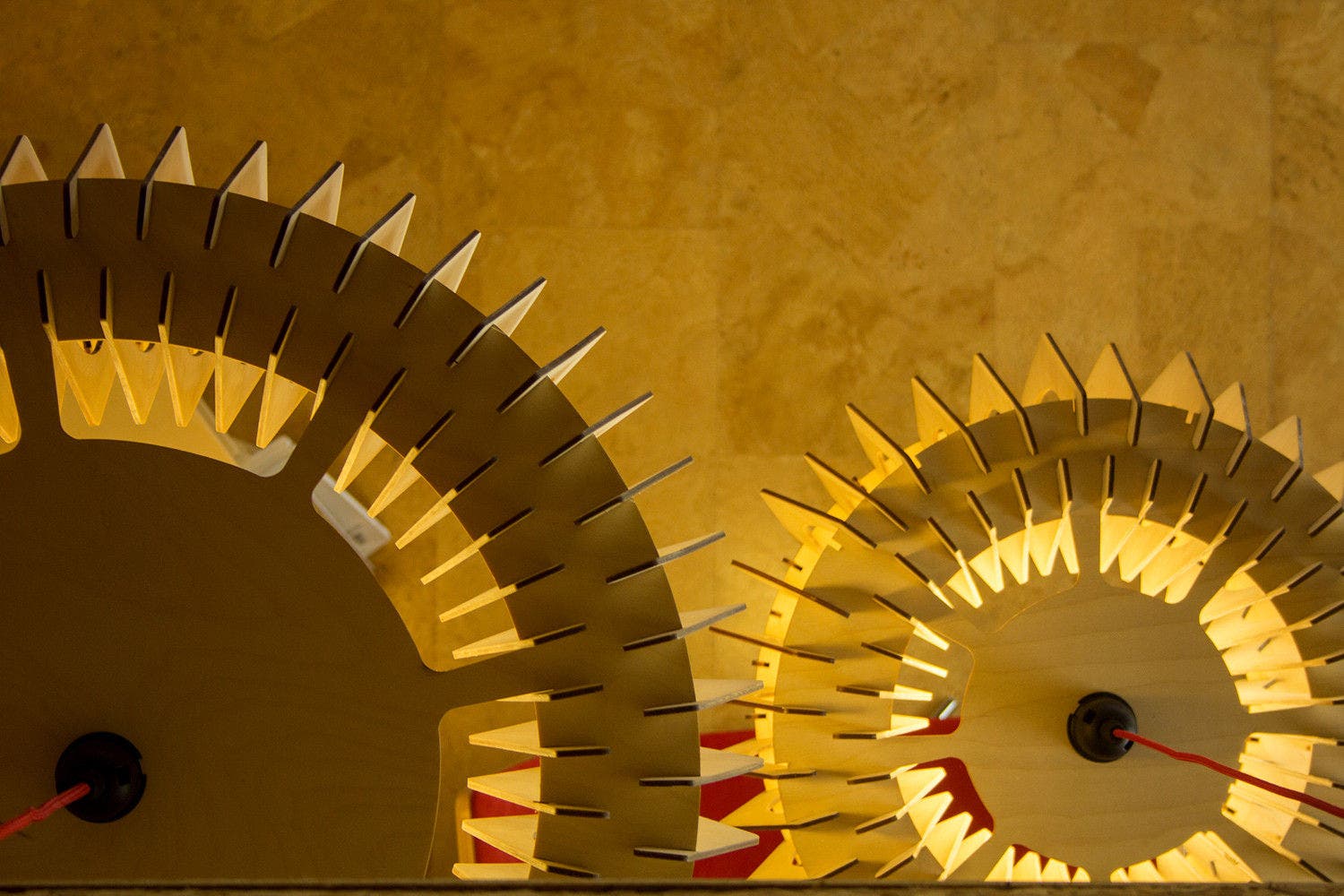 De Caeser lamp van het Portugese merk Bomerango is een eigentijdse lamp die bestaat uit houten boemerangs.