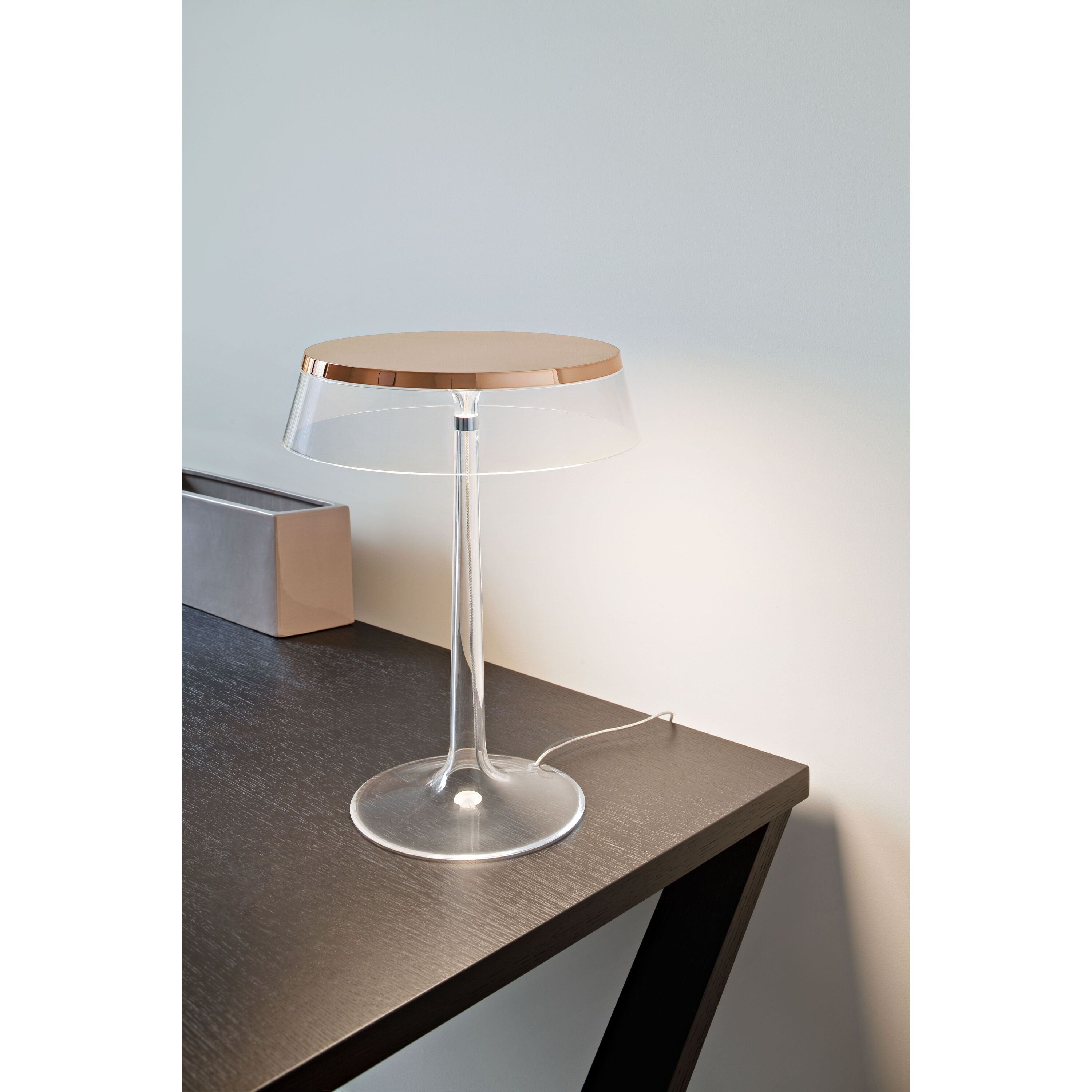 Bon Jour tafellamp LED koper, kap transparant
