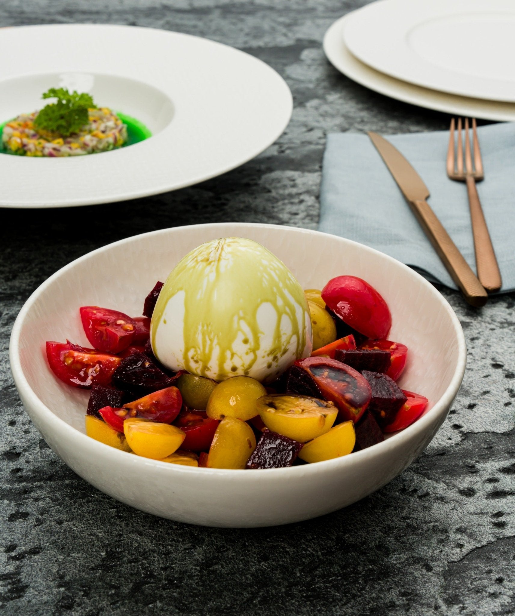 De Patch-collectie herdefinieert de puurheid en elegantie van wit porselein met zijn kenmerkende oppervlaktepatroon en transformeert alledaags servies in een verfijnde presentatie. Met een unieke glazuurlaag, een stapelbaar ontwerp voor extra gebruiksgemak en een krasbestendige afwerking, is deze collectie bekroond met een gloednieuw, glanzend digitaal patroon. Het is dé collectie bij uitstek voor toprestaurants, die reikhalzend uitkijken naar creatieve chefs die de visuele aantrekkingskracht van hun culinaire presentaties willen vergroten.