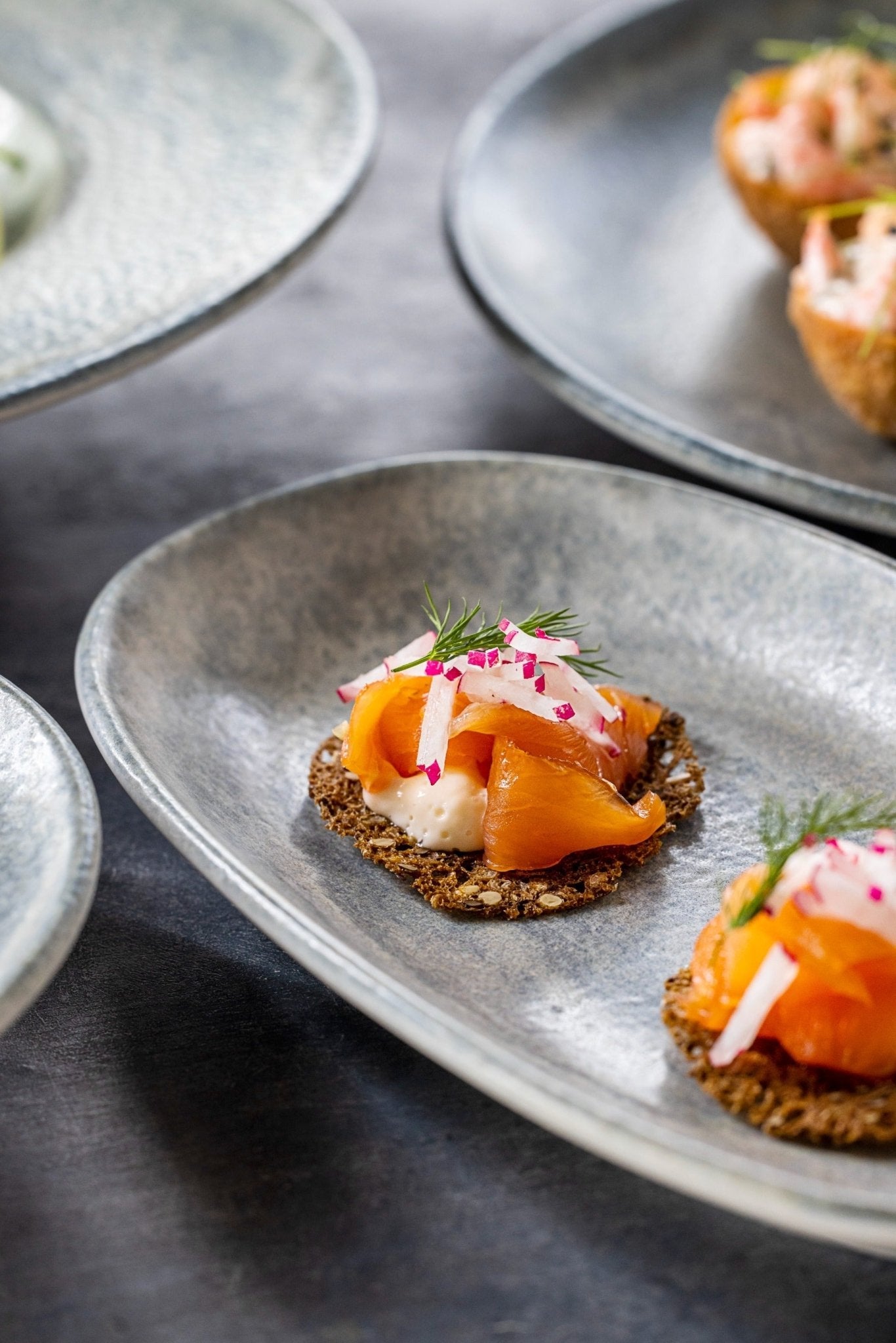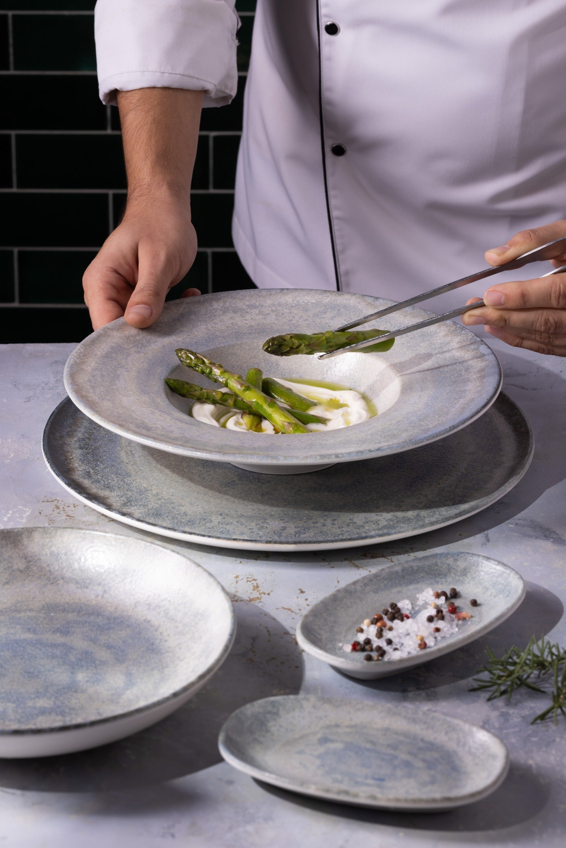 Onze Omnia serie, geïnspireerd door prachtige levenskrachten, zal uw bevoorrechte presentaties en de meest opvallende momenten van uw smaakreis begeleiden, waarbij het ontwerp de sporen draagt van de langdurige interactie van water met beton.