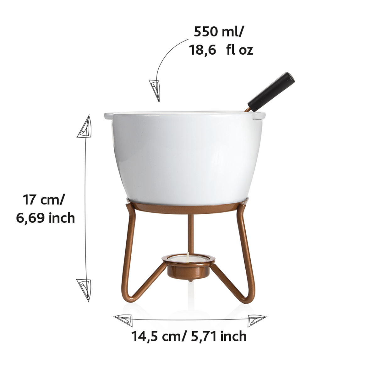 - VOOR CHOCOLADEFONDUE: met een inhoud van 550 ml geniet je van 400 gram gesmolten chocolade