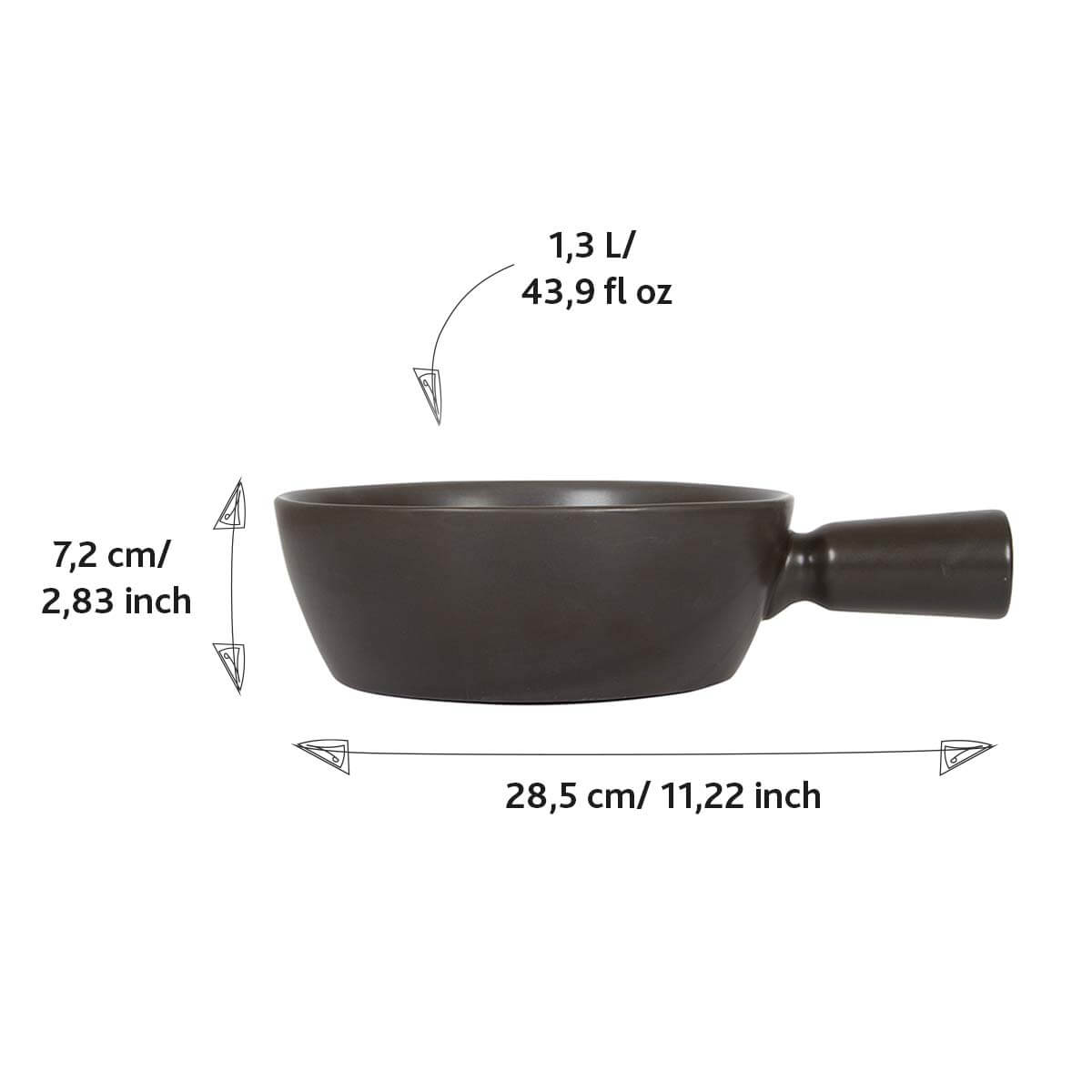 - INHOUD: keramieken fonduepan, recept, manual (afmetingen product: 200 x 290 x 75 mm)