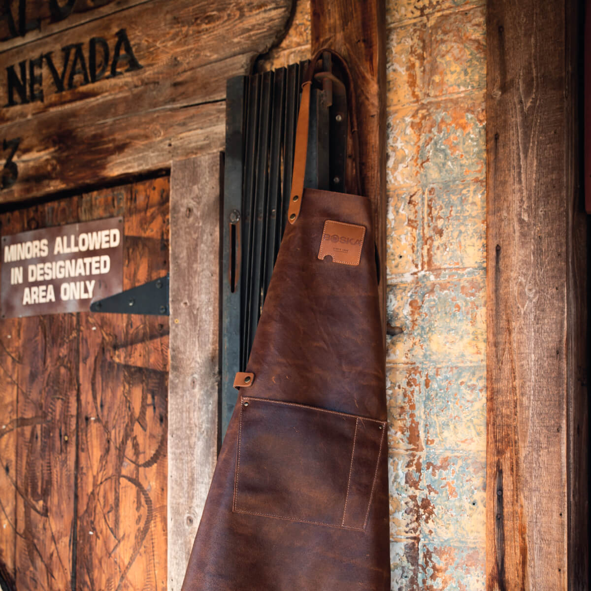 - ECHT LEER: Dit lederen schort is handgemaakt van hoogwaardig leer: af en toe invetten met leervet je kan er jaren mee vooruit