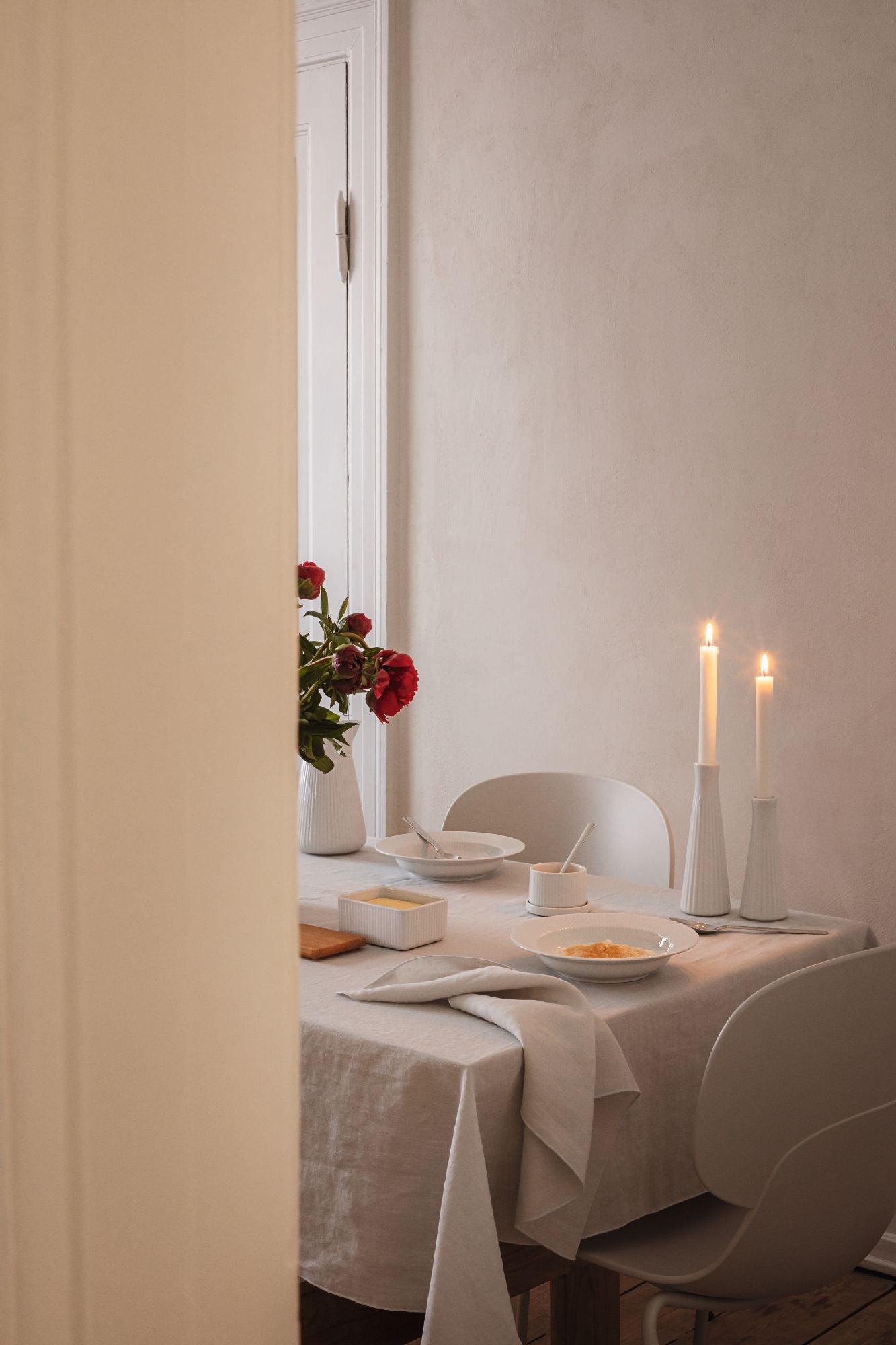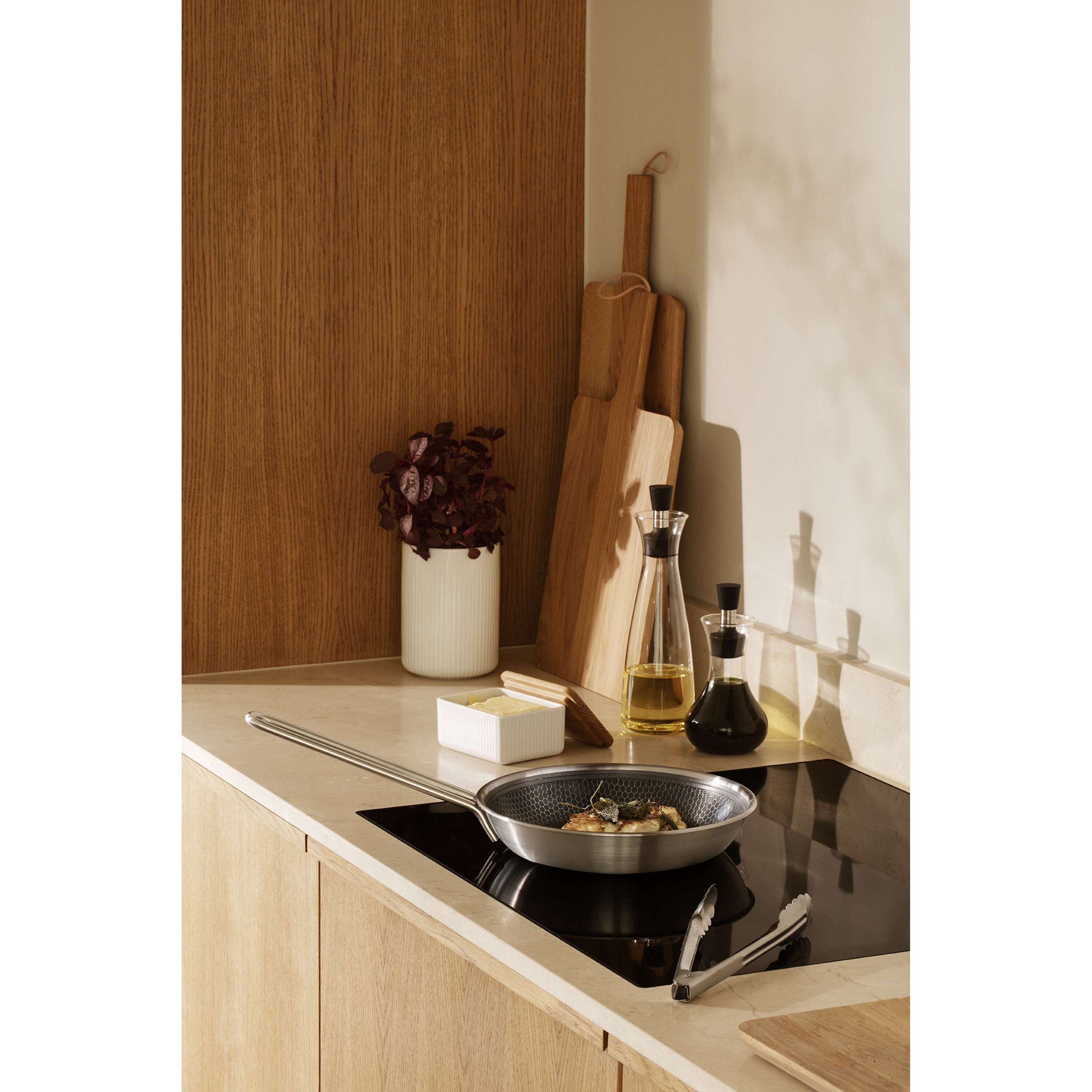 Eva Trio is een wereldwijd bekend Deens merk dat bestaat sinds 1913. Eva Trio is gevormd door de populaire ontwerper Ole Palsby. Het team hecht veel waarde aan functionaliteit. Zo zijn de pannen goed stapelbaar en hebben ze een slim dekselsysteem. Bij de pannen ligt onze prioriteit bij het unieke gepatenteerde anti-slip effect of het keramische oppervlak. Naast het kookgerei ligt de focus op serviesgoed. De serie Legio Nova werd voor het eerst gelanceerd in 2015. Het populaire ribpatroon is ook terug te vinden op traditionele lijnen van Royal Copenhagen, evenals op de werken van de keramische kunstenaar Hammershøi. Bovendien maakt de serie indruk met bescheiden en harmonische vormen. Omdat wit de hoofdkleur is van deze servies serie, kunnen de stukken gemakkelijk gecombineerd worden met ander porseleinen servies. Legio Nova is sinds 2016 aanzienlijk uitgebreid en heeft inmiddels zijn weg gevonden in de professionele scene.