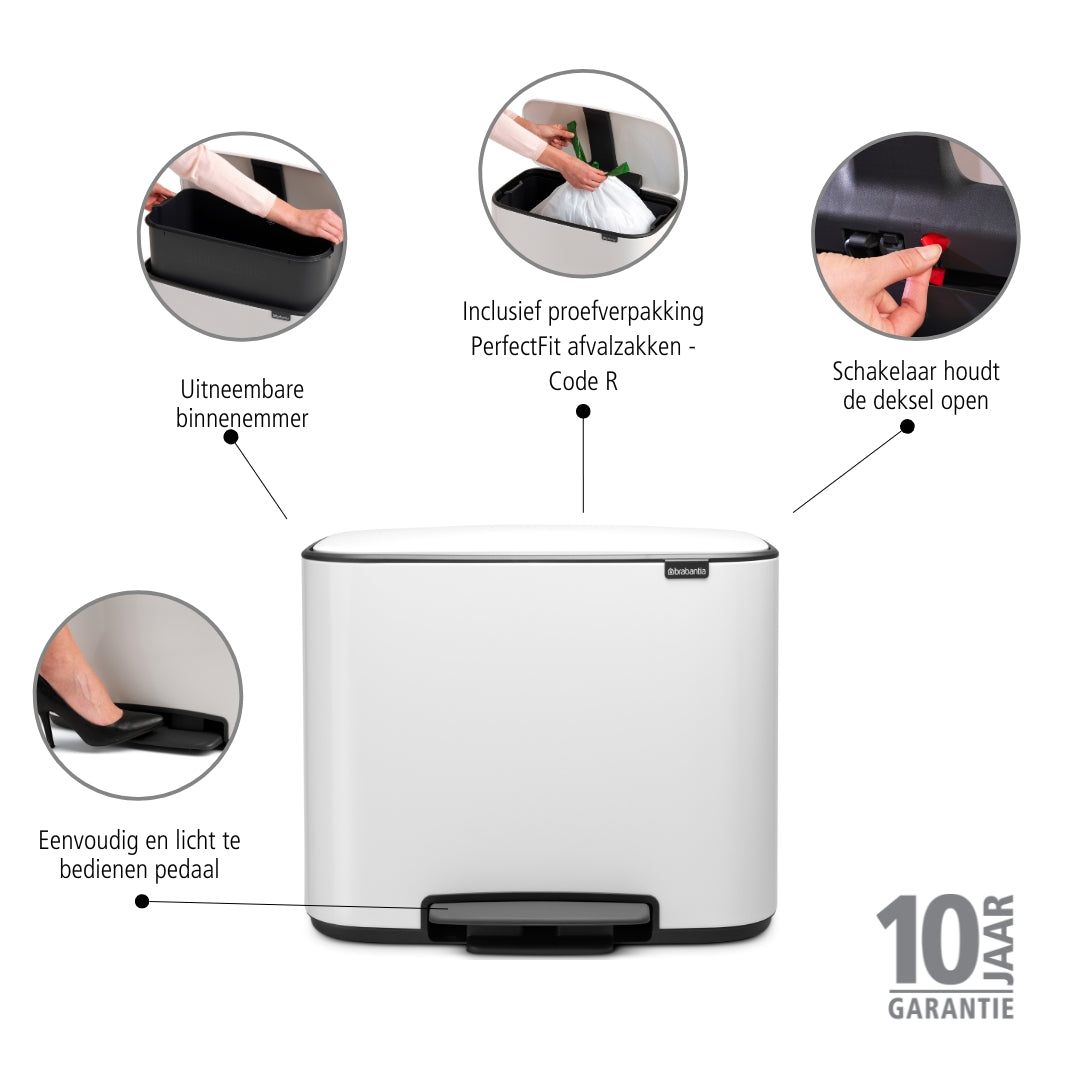 | Prullenbakopties | Geruisloze sluiting, Losse binnenemmer, Reukdicht, Zonder pootjes |