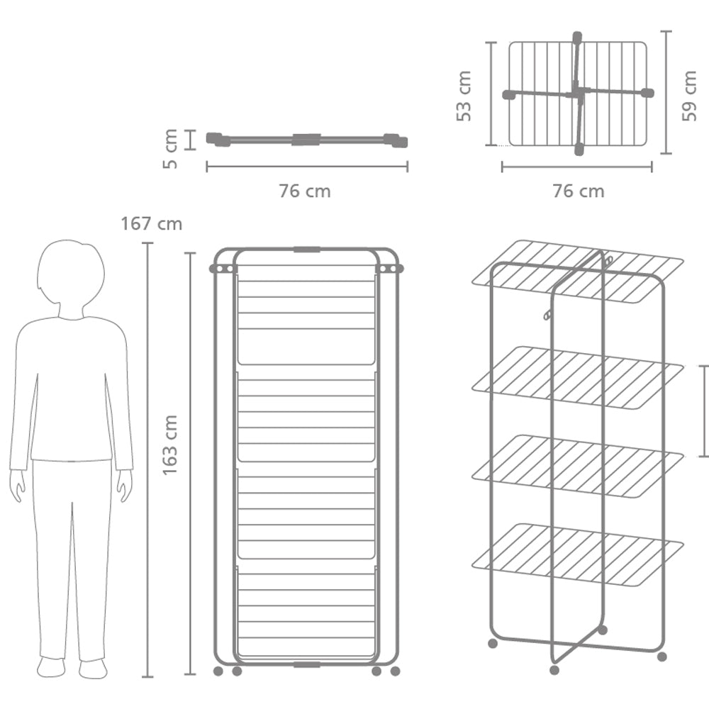 - Droogtoren met veel ruimte van H 164 x B 58,7 x D 4,2 cm