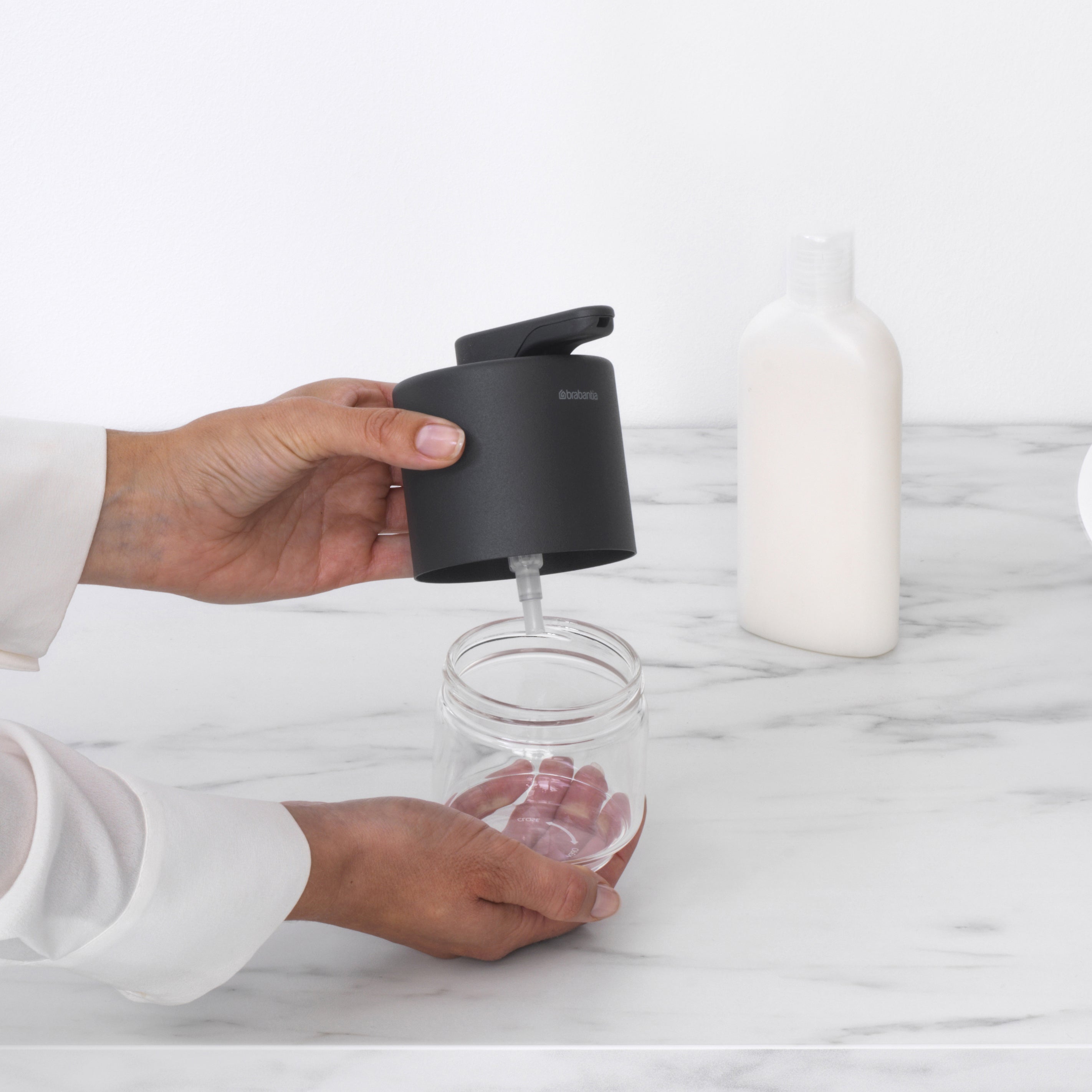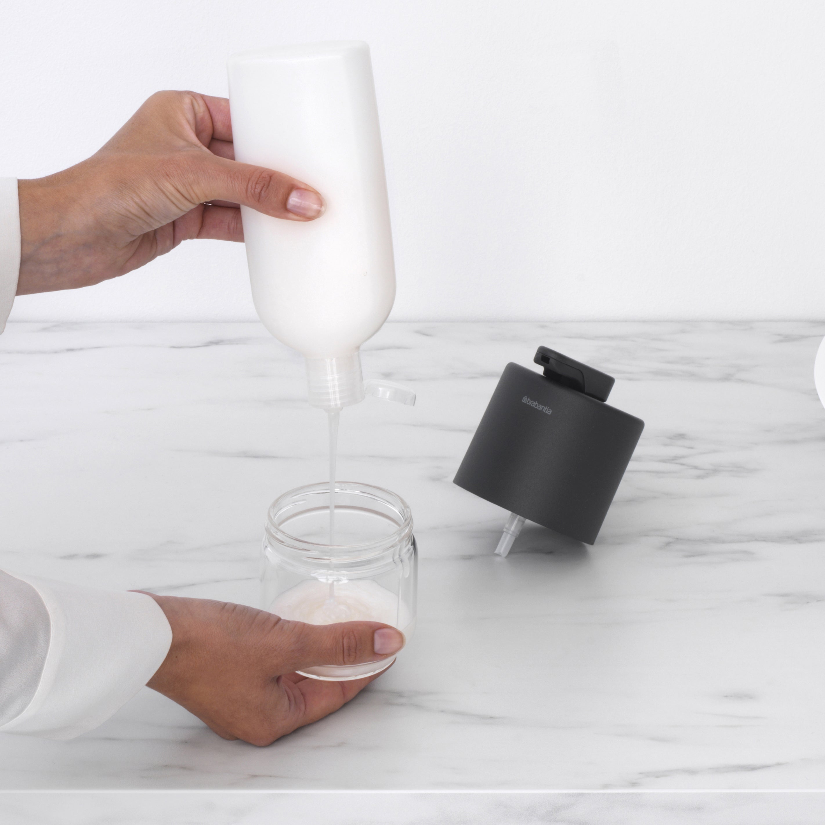 - Unieke zeepdispenser van H 10,8 x B 8 x D 9,7 cm
