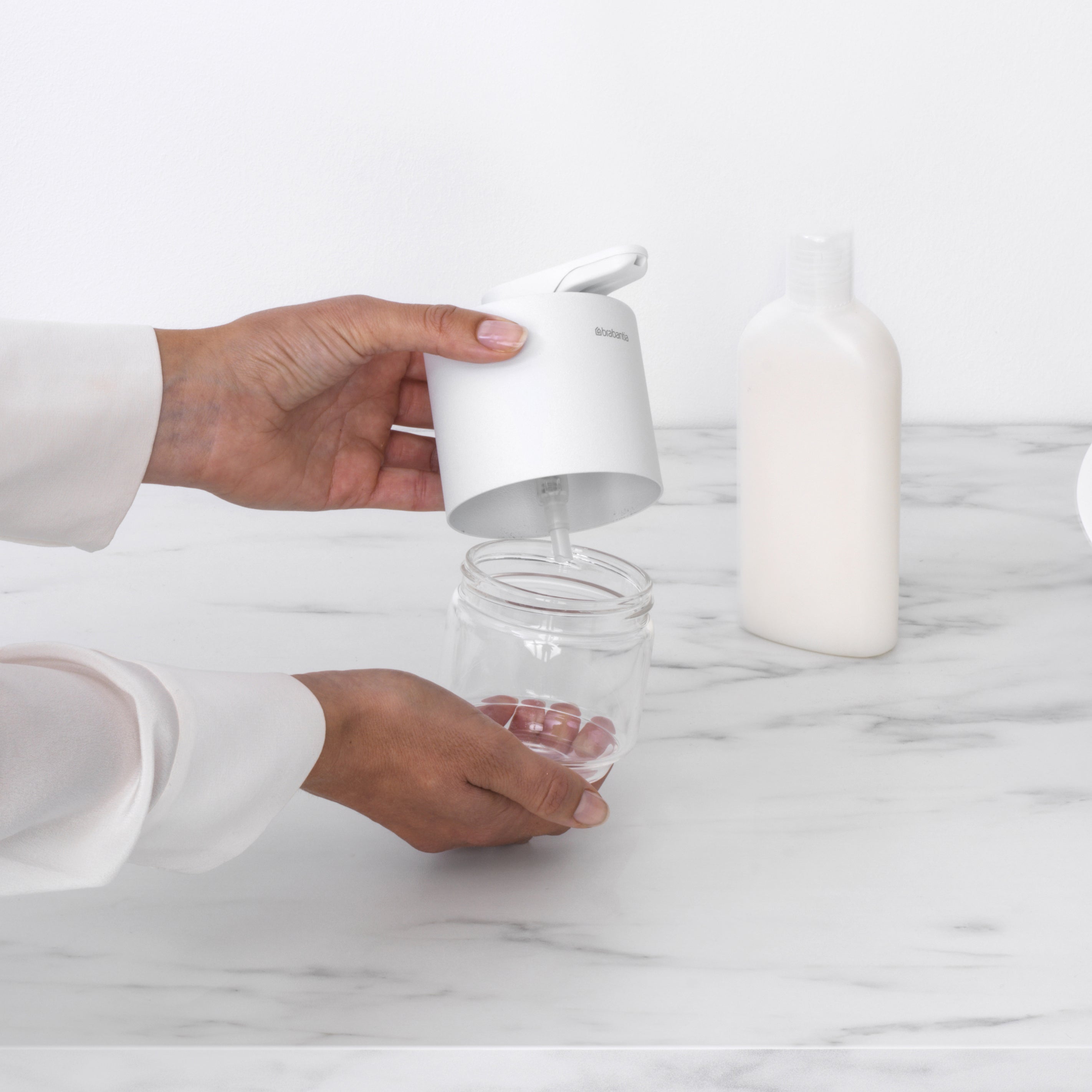 - Unieke zeepdispenser van H 10,8 x B 8 x D 9,7 cm