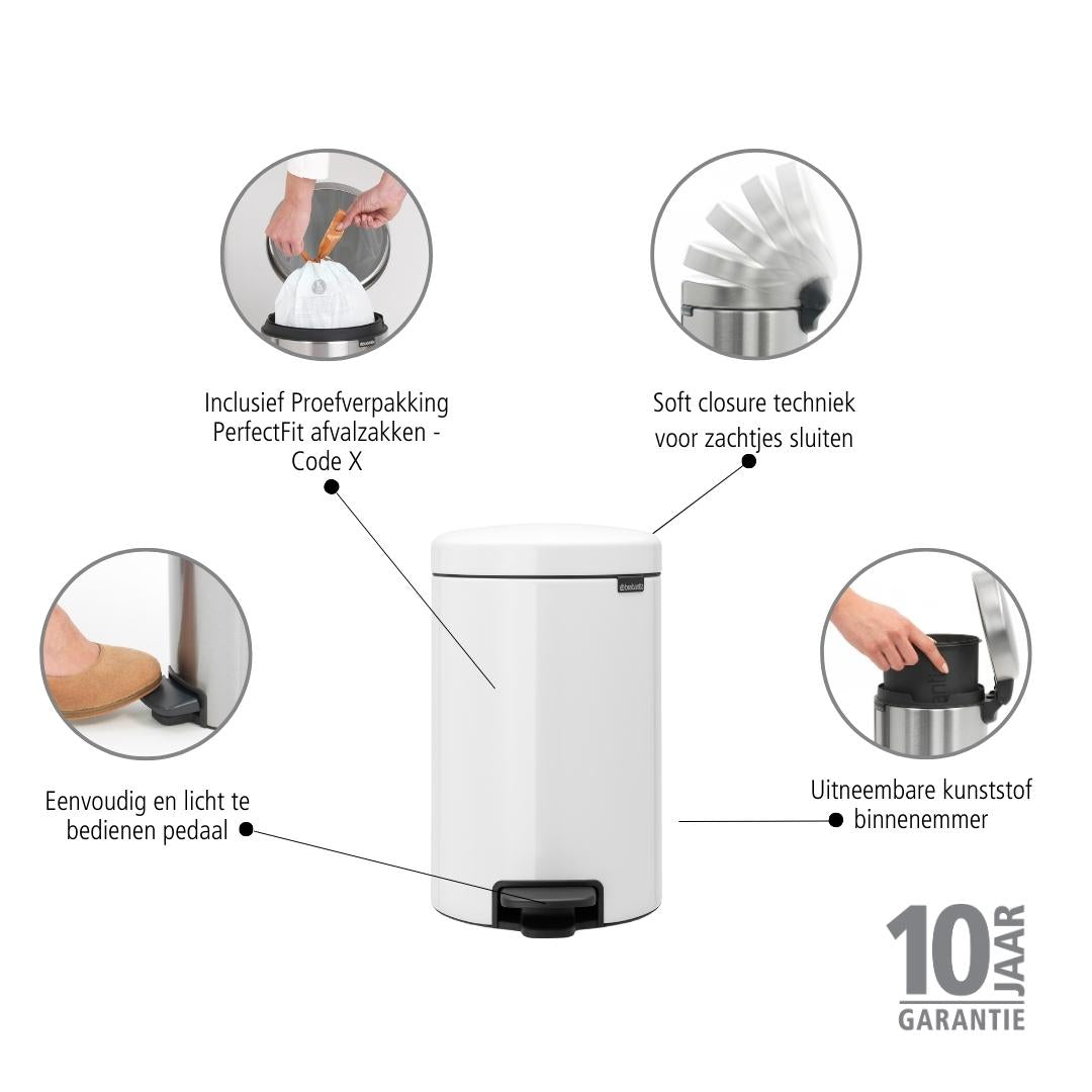 - Inhoud van 12 liter; ideaal voor in de badkamer