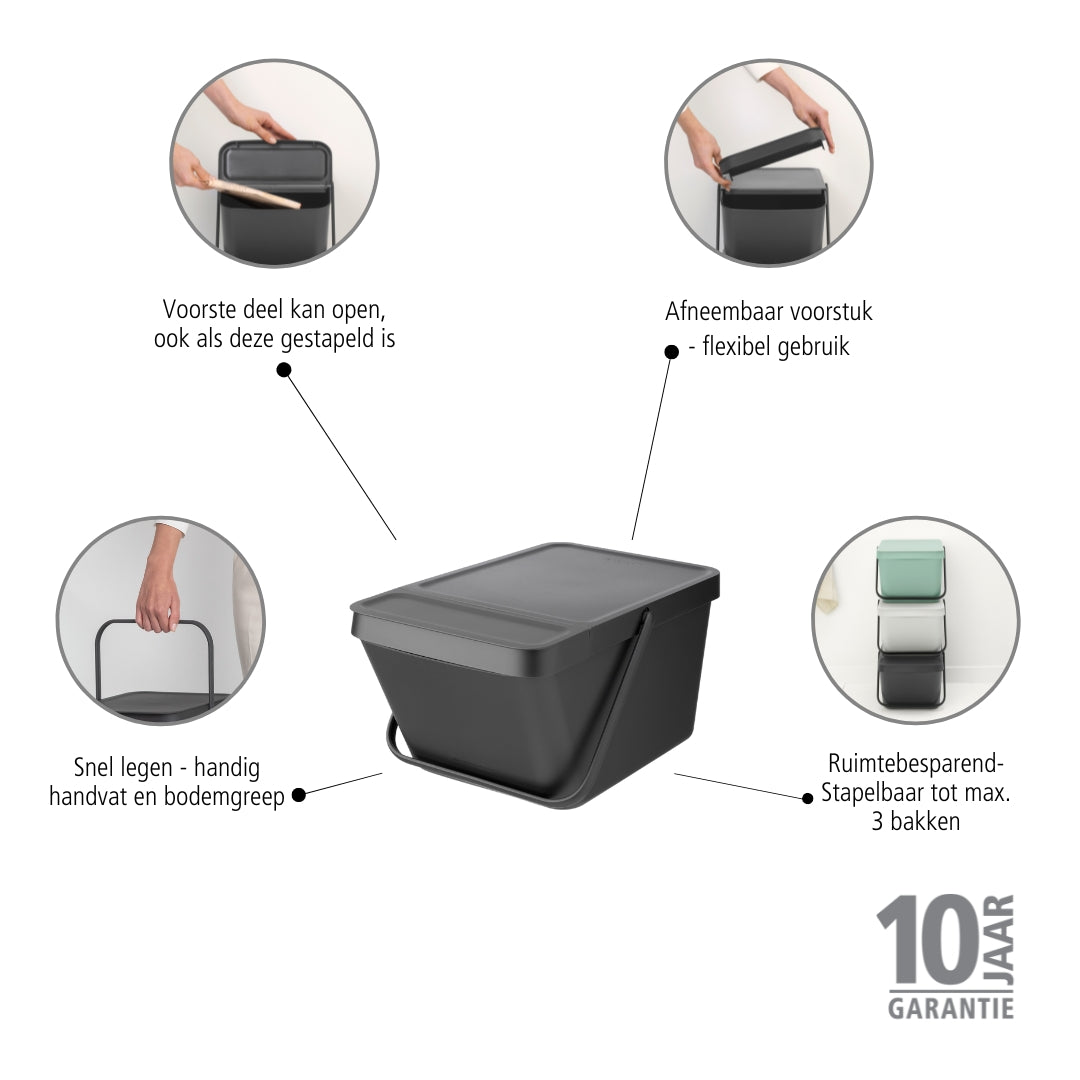 - Stapel maximaal 3 bakken om ruimte te besparen